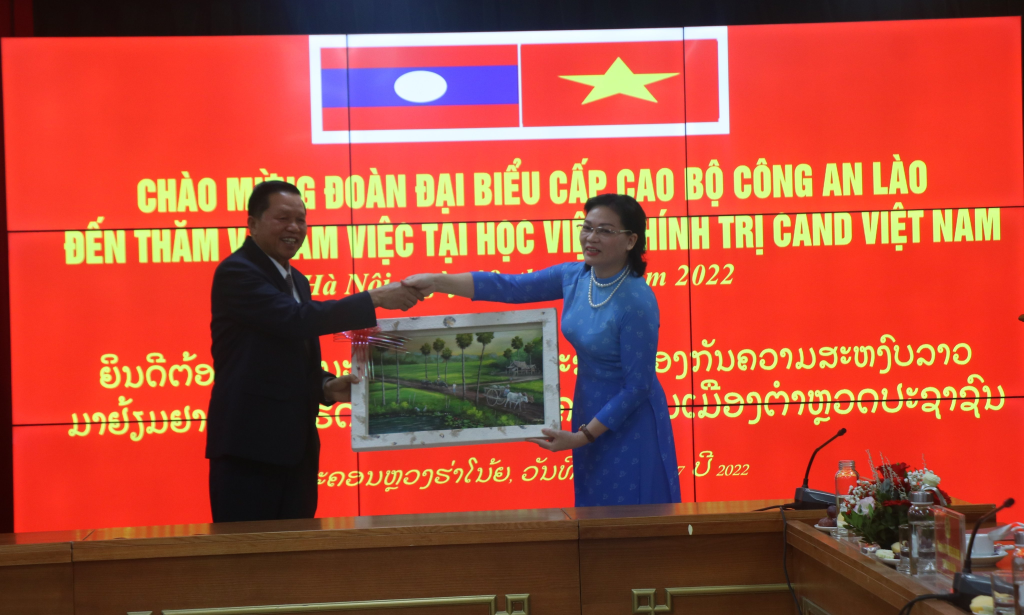 Chương trình đến thăm, làm việc tại Học viện Chính trị Công an nhân dân của Đoàn đại biểu cấp cao Bộ Công an Lào do đồng chí Thứ trưởng dẫn đầu nằm trong kế hoạch sang thăm và trao đổi kinh nghiệm với Bộ Công an Việt Nam; trước đó, Đoàn đã có buổi Hội đàm với Bộ Công an Việt Nam và chào xã giao đồng chí Bộ trưởng Bộ Công an; Đoàn cũng đã đi thăm, làm việc với một số đơn vị thuộc Bộ.