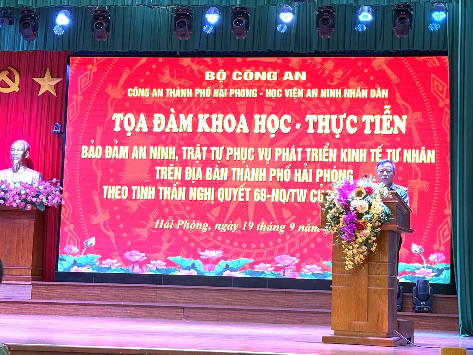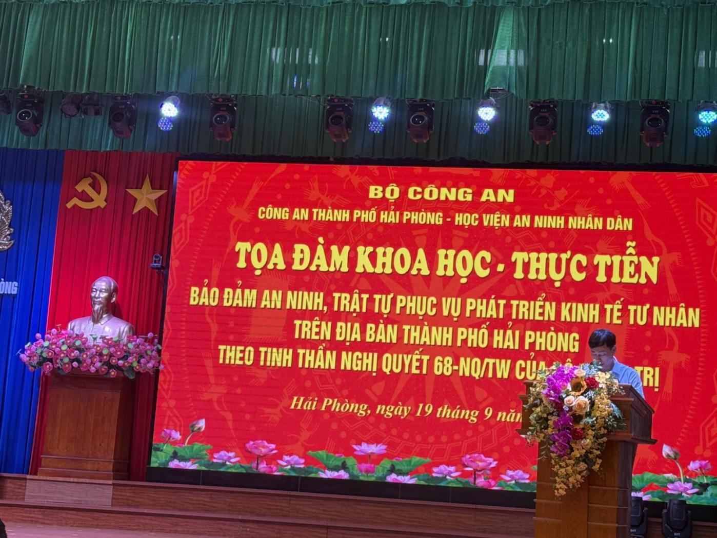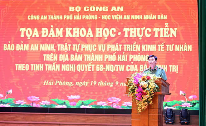 Chiều ngày 19/9/2025, tại Thành phố Hải Phòng, Công an thành phố Hải Phòng phối hợp với Học viện An ninh nhân dân tổ chức Toạ đàm khoa học - thực tiễn “Bảo đảm an ninh, trật tự phục vụ phát triển kinh tế tư nhân trên địa bàn thành phố Hải Phòng theo tinh thần Nghị quyết số 68-NQ/TW của Bộ Chính trị”.
