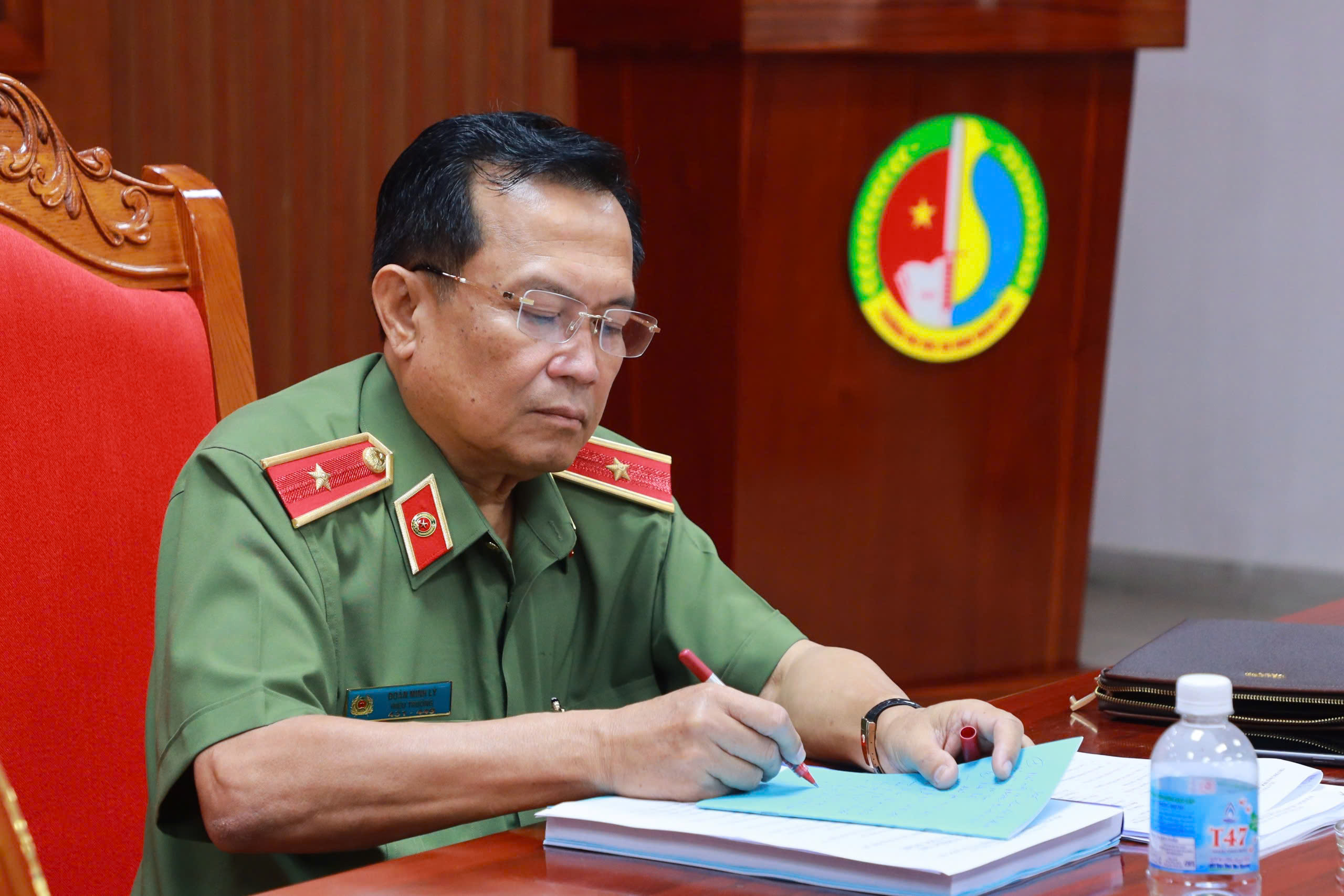TS, Đại tá Lâm Phước Nguyên - Giám đốc Công an tỉnh An Giang phát biểu tại buổi đánh giá