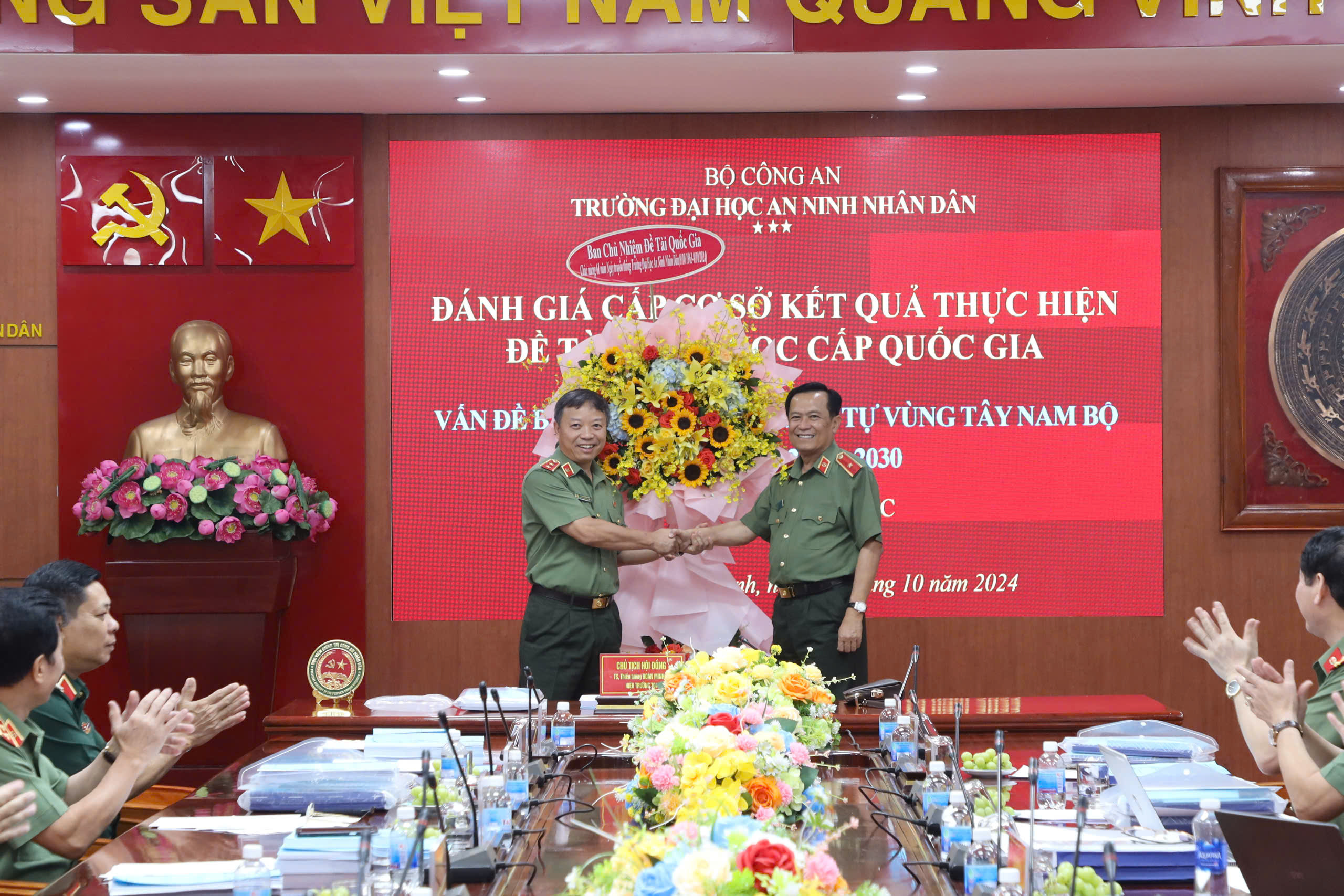 Ngày 08/10/2024, tại Trường Đại học An ninh nhân dân đã tổ chức đánh giá cấp cơ sở kết quả thực hiện Đề tài khoa học cấp Quốc gia: Mã số ĐTĐL.XH.13/22-C do Nhà trường chủ trì; đồng chí PGS.TS, Trung tướng Phan Xuân Tuy, Giám đốc Học viện Chính trị Công an nhân dân làm chủ nhiệm. Đồng chí TS, Thiếu tướng Đoàn Minh Lý, Bí thư Đảng ủy, Hiệu trưởng Trường Đại học An ninh nhân dân làm Chủ tịch Hội đồng.