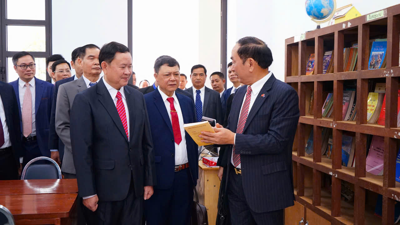 Đồng chí Thứ trưởng cùng đoàn công tác thăm Thư viện và Phòng Truyền thống Học viện Chính trị Công an Lào