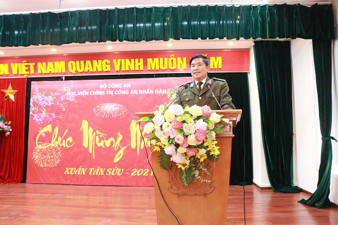 Tại buổi gặp mặt, đồng chí Trung tướng, PGS.TS Trần Vi Dân, Giám đốc Học viện đã thông tin tình hình hoạt động cũng như những kết quả đạt được của Học viện Chính trị Công an nhân dân trong thời gian qua; biểu dương những cố gắng, đóng góp của cán bộ, chiến sĩ, giảng viên Học viện. Đồng thời, đồng chí Giám đốc Học viện cũng nêu ra hạn chế, tồn tại cần khắc phục trong thời gian tới và yêu cầu cán bộ, chiến sĩ, giảng viên Học viện trong thời gian nghỉ Tết Nguyên đán cần nghiêm chỉnh chấp hành các quy định của pháp luật, điều lệnh Công an nhân dân và thực hành tiết kiệm, chống lãng phí.