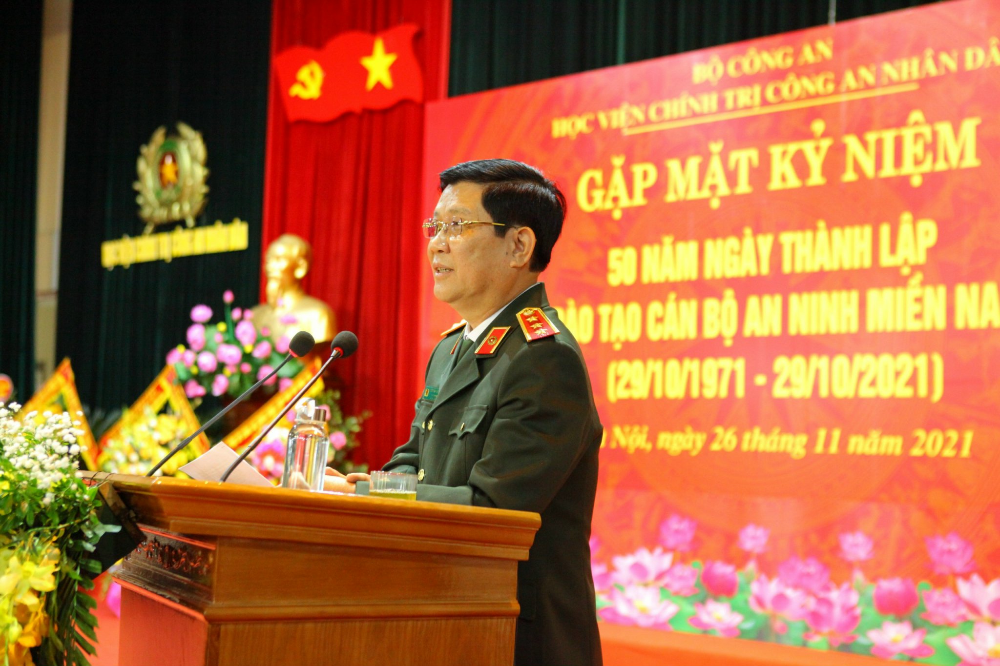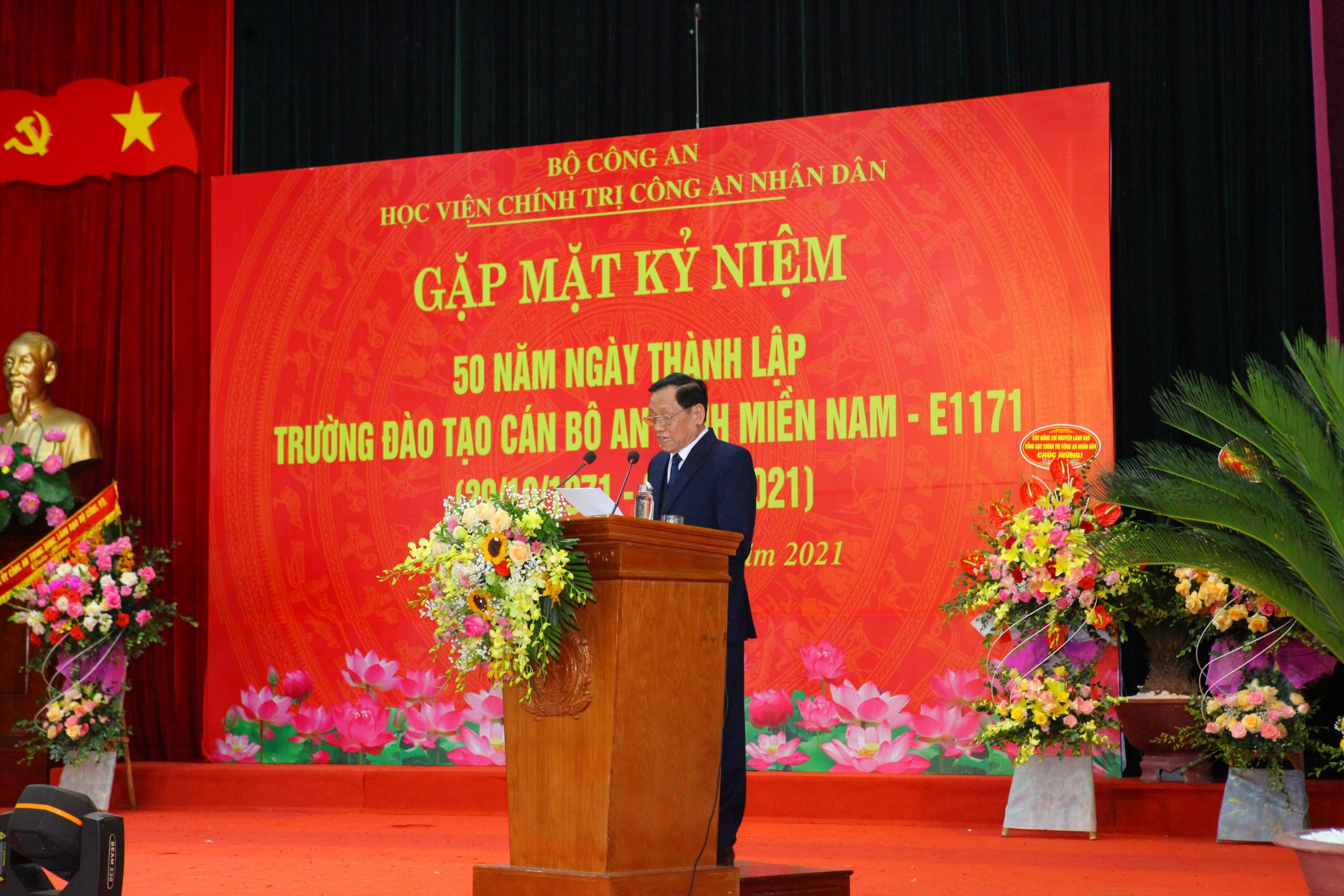 Tại buổi gặp mặt, đồng chí Đại tá Nguyễn Văn Nghiêm thay mặt các thế hệ cán bộ, học viên trường E1171 phát biểu gửi lời cảm ơn đến các đồng chí lãnh đạo, nguyên lãnh đạo Bộ Công an, Đảng ủy Công an Trung ương đã quan tâm, đồng hành cùng nhà trường trong quá trình xây dựng và phát triển; cảm ơn Đảng ủy, Ban Giám đốc Học viện Chính trị CAND đã tận tình giúp đỡ, tạo mọi điều kiện thuận lợi nhất để tổ chức buổi gặp mặt trang trọng, ý nghĩa này. Trong diễn văn kỷ niệm đã ôn lại quá trình xây dựng, phát triển của nhà trường qua từng thời kỳ. Trong đó khẳng định cuối những năm 1960, đầu những năm 1971, cuộc chiến tranh kháng chiến chống Mỹ của nhân dân ta dưới sự lãnh đạo của Đảng và Bác Hồ đã thu được những thắng lợi to lớn, Bộ Chính trị có những dự báo về khả năng thắng lợi của cách mạng miền Nam trong thời gian không xa. Để chuẩn bị nguồn cán bộ trước mắt và lâu dài cho an ninh miền Nam và bồi dưỡng đội ngũ cán bộ an ninh miền Bắc kịp thời chi viện, ngày 29/10/1971 đồng chí Trần Quốc Hoàn - Ủy viên Bộ Chính trị, Bộ trưởng Bộ Công an ký quyết định số 1250/QĐ-BCA về việc thành lập trường đào tạo cán bộ cho an ninh miền nam lấy ký hiệu E1171 đặt tại thôn Tĩnh Luyện xã Đồng Tĩnh, huyện Tam Dương, Tỉnh Vĩnh Phú (nay là Vĩnh Phúc) với nhiệm vụ: (1) Bổ túc nâng cao trình độ văn hóa chính trị, nghiệp vụ cho cán bộ an ninh miền Nam; (2) Đào tạo cán bộ cho ngành An ninh miền nam về trình độ văn hóa, chính trị, nghiệp vụ và kỹ thuật; (3) Đào tạo văn hóa theo các bậc học phổ thông cho con em các cán bộ an ninh miền Nam và cán bộ chủ chốt của các ngành thuộc các địa phương miền Nam.
