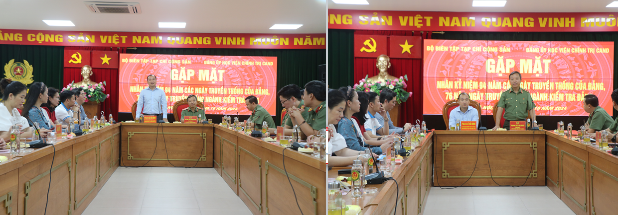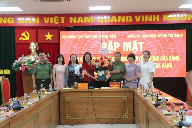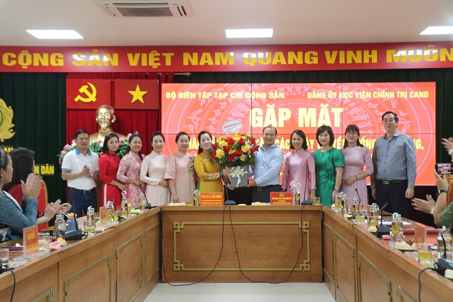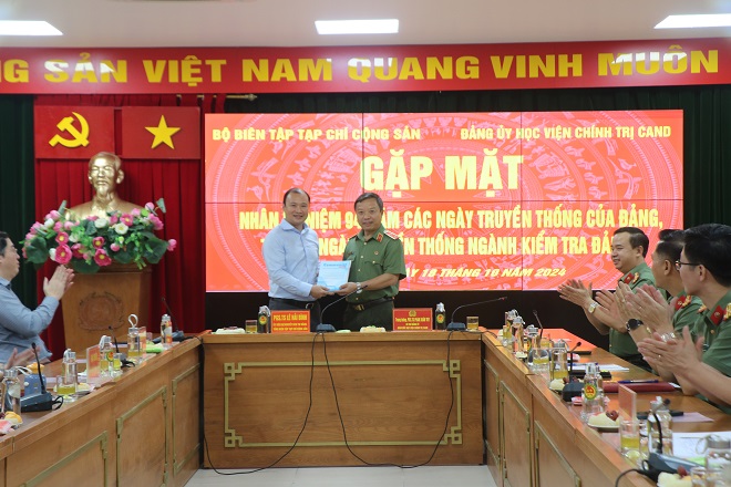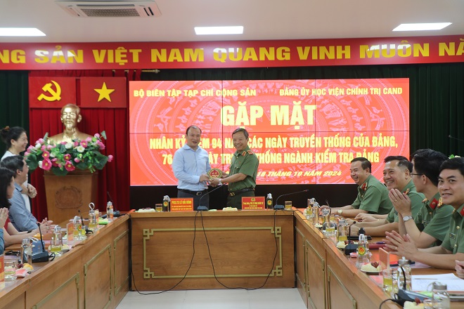 Nhân dịp kỷ niệm 94 năm Ngày truyền thống các Ban Đảng (Ngày truyền thống ngành Tổ chức xây dựng Đảng 14/10; Ngày truyền thống công tác dân vận của Đảng 15/10; Ngày truyền thống Văn phòng cấp ủy 18/10), 76 năm Ngày truyền thống kiểm tra đảng và Kỷ niệm 94 năm Ngày thành lập Hội Liên hiệp phụ nữ Việt Nam 20/10; đồng thời, để tăng cường giao lưu, trao đổi kinh nghiệm, định hướng một số nội dung hợp tác trong thời gian tới giữa Tạp chí Cộng sản và Học viện Chính trị CAND, chiều ngày 18/10/2024, Học viện Chính trị CAND tổ chức buổi giao lưu, trao đổi giữa hai đơn vị.