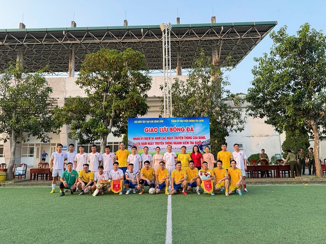 Chiều cùng ngày, đội bóng hai đơn vị tổ chức giao lưu tại sân vận động Học viện. Với sự cổ vũ nhiệt tình từ lãnh đạo, cán bộ hai đơn vị, trận đấu giữa Học viện Chính trị CAND và Tạp chí Cộng sản đã diễn ra thành công tốt đẹp với nhiều pha bóng hay, bàn thắng đẹp mắt; qua đó, góp phần thắt chặt hơn nữa tinh thần đoàn kết, gắn bó giữa hai đơn vị. Các tuyển thủ cùng toàn thể các thành viên của hai đơn vị đã bắt tay nhau trong tình cảm đoàn kết, vui vẻ khép lại buổi giao lưu nhiều ý nghĩa giữa 2 đơn vị.
