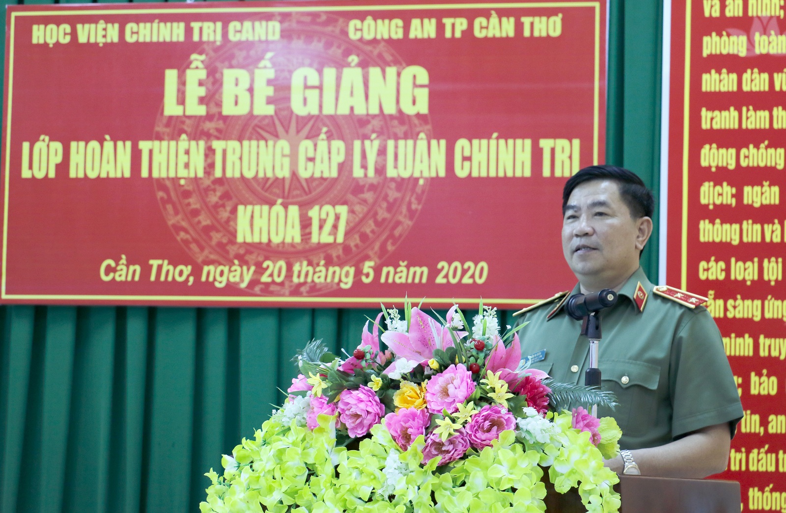 Chiều 20/5, Học viện Chính trị CAND phối hợp với Công an TP Cần Thơ tổ chức lễ bế giảng lớp hoàn thiện trung cấp lý luận chính trị (khóa 127) cho 63 học viên thuộc lực lượng Công an thành phố, Công an tỉnh Hậu Giang và Trại giam kinh 5 thuộc Cục Cảnh sát Quản lý trại giam, cơ sở giáo dục, trường giáo dưỡng, Bộ Công an.
