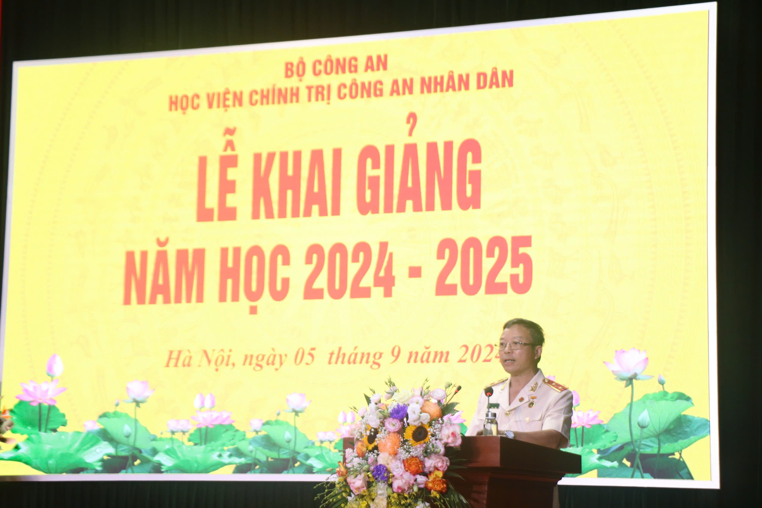 Cơ bản đồng tình với phương hướng, nhiệm vụ năm học 2024 - 2025 của Học viện, đồng chí Thứ trưởng nhấn mạnh: năm học mới là năm có nhiều sự kiện lớn, trọng đại của đất: Kỷ niệm 80 năm cách mạng tháng Tám, Quốc khánh 02/9; 80 năm truyền thống CAND Việt Nam anh hùng; chuẩn bị và tổ chức Đại hội Đảng các cấp nhiệm kỳ 2025-2030, tiến tới Đại hội Đảng toàn quốc lần thứ XIV; trước yêu cầu tiếp tục đẩy mạnh đổi mới căn bản, toàn diện giáo dục, đào tạo theo Kết luận số 91-KL/TW ngày 12/8/2024 của Bộ Chính trị và đẩy mạnh xây dựng lực lượng CAND thật sự trong sạch, vững mạnh, chính quy, tinh nhuệ, hiện đại, đáp ứng yêu cầu, nhiệm vụ trong tình hình mới theo tinh thần Nghị quyết số 12-NQ/TW ngày 16/3/2022 của Bộ Chính trị và trong bối cảnh tình hình thế giới, khu vực và trong nước tiếp tục có nhiều diễn biến nhanh chóng, phức tạp, khó lường, đặt ra những yêu cầu hết sức khó khăn cho công tác bảo đảm an ninh trật tự; thậm chí là nhiều thách thức mới, chưa có tiền lệ. Để hoàn thành xuất sắc nhiệm vụ được giao; bảo đảm giữ vững an ninh quốc gia, bảo đảm trật tự, an toàn xã hội, “tạo động lực” cho phát triển kinh tế, xã hội; phát huy truyền thống vẻ vang của CAND Việt Nam anh hùng qua 80 năm xây dựng, chiến đấu và trưởng thành, đòi hỏi toàn lực lượng CAND phải nỗ lực, quyết tâm, với tinh thần “tuyệt đối trung thành với Đảng, Tổ quốc và Nhân dân”, vì bình yên cuộc sống, vì hạnh phúc của Nhân dân, thi đua hoàn thành xuất sắc mọi nhiệm vụ được giao.