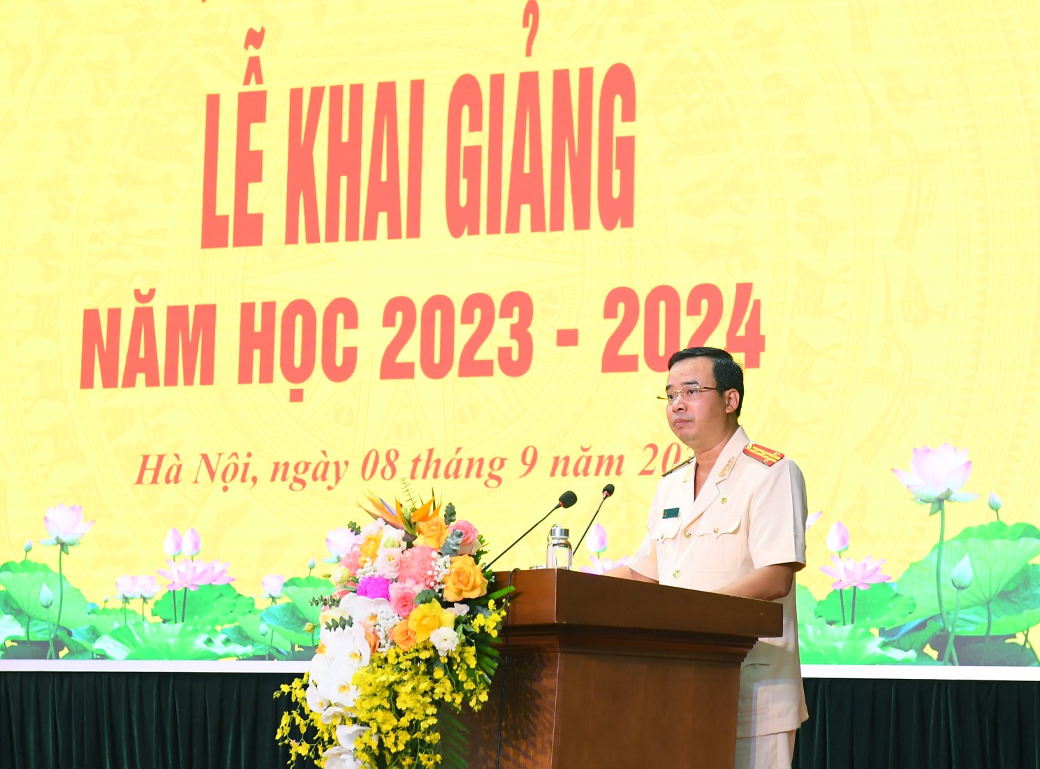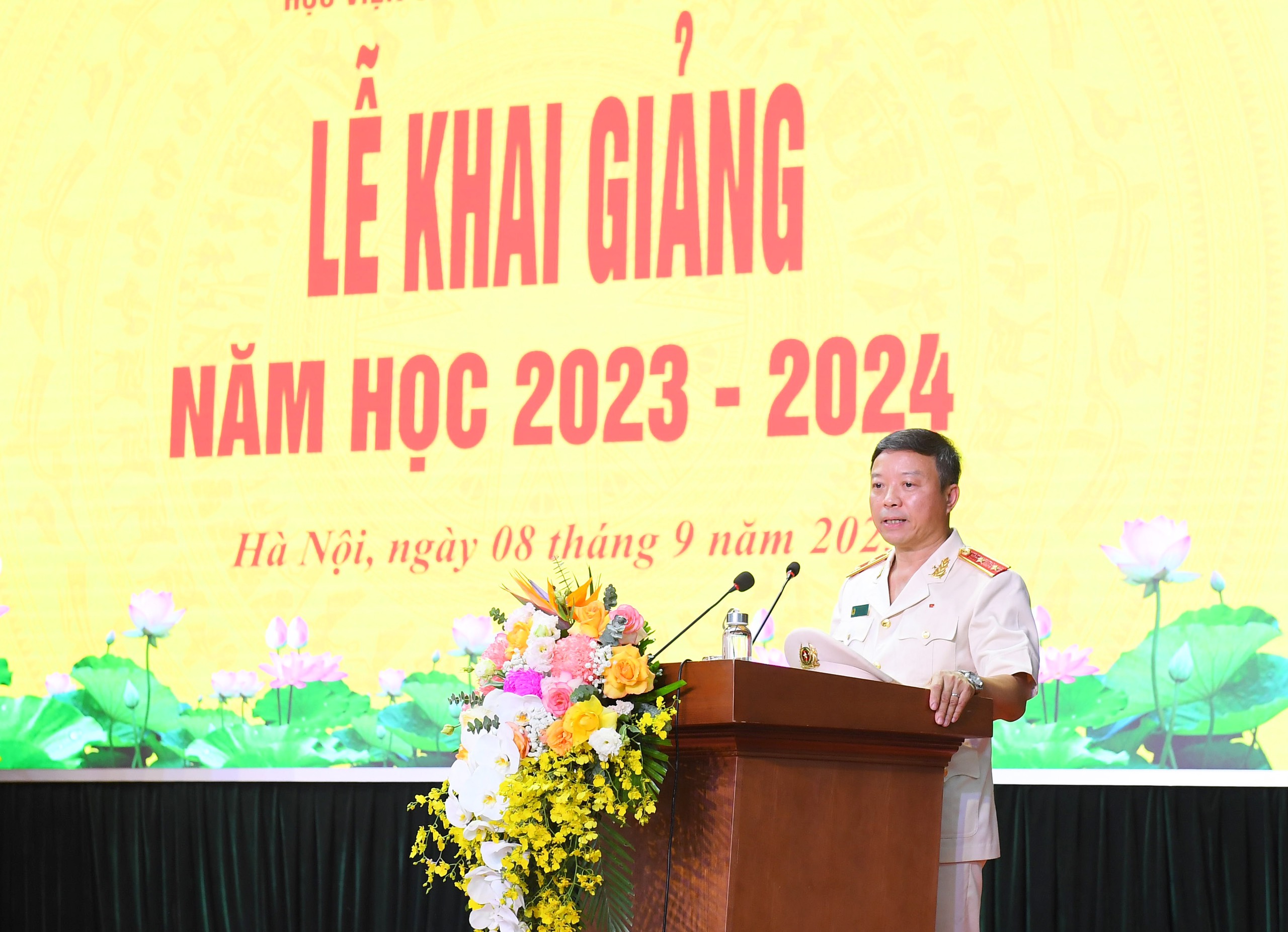 Phát biểu tại Lễ khai giảng, đồng chí Giám đốc Học viện trân trọng cảm ơn sự quan tâm, chỉ đạo của lãnh đạo Đảng, Nhà nước; sự giúp đỡ của các Bộ, Ban, Ngành, Trung ương, các học viện, nhà trường và Công an các đơn vị, địa phương, các nhà khoa học. Đặc biệt là sự quan tâm chỉ đạo sát sao, hiệu quả của Đảng ủy Công an Trung ương, lãnh đạo Bộ Công an đối với Học viện Chính trị Công an nhân dân; Học viện sẽ luôn cố gắng hoàn thành tốt nhiệm vụ được giao với tinh thần trách nhiệm cao nhất. Đồng thời, trong thời gian tới, rất mong Đảng ủy Công an Trung ương, lãnh đạo Bộ Công an, các nhà khoa học, các cơ quan chức năng, các học viện, nhà trường trong và ngoài Công an nhân dân tiếp tục dành sự quan tâm, chỉ đạo, phối hợp, cộng tác, giúp đỡ nhiều hơn nữa để Học viện phát triển và trưởng thành vững mạnh, toàn diện; hoàn thành xuất sắc nhiệm vụ chính trị được Đảng ủy Công an Trung ương, lãnh đạo Bộ Công an tin cậy giao phó.