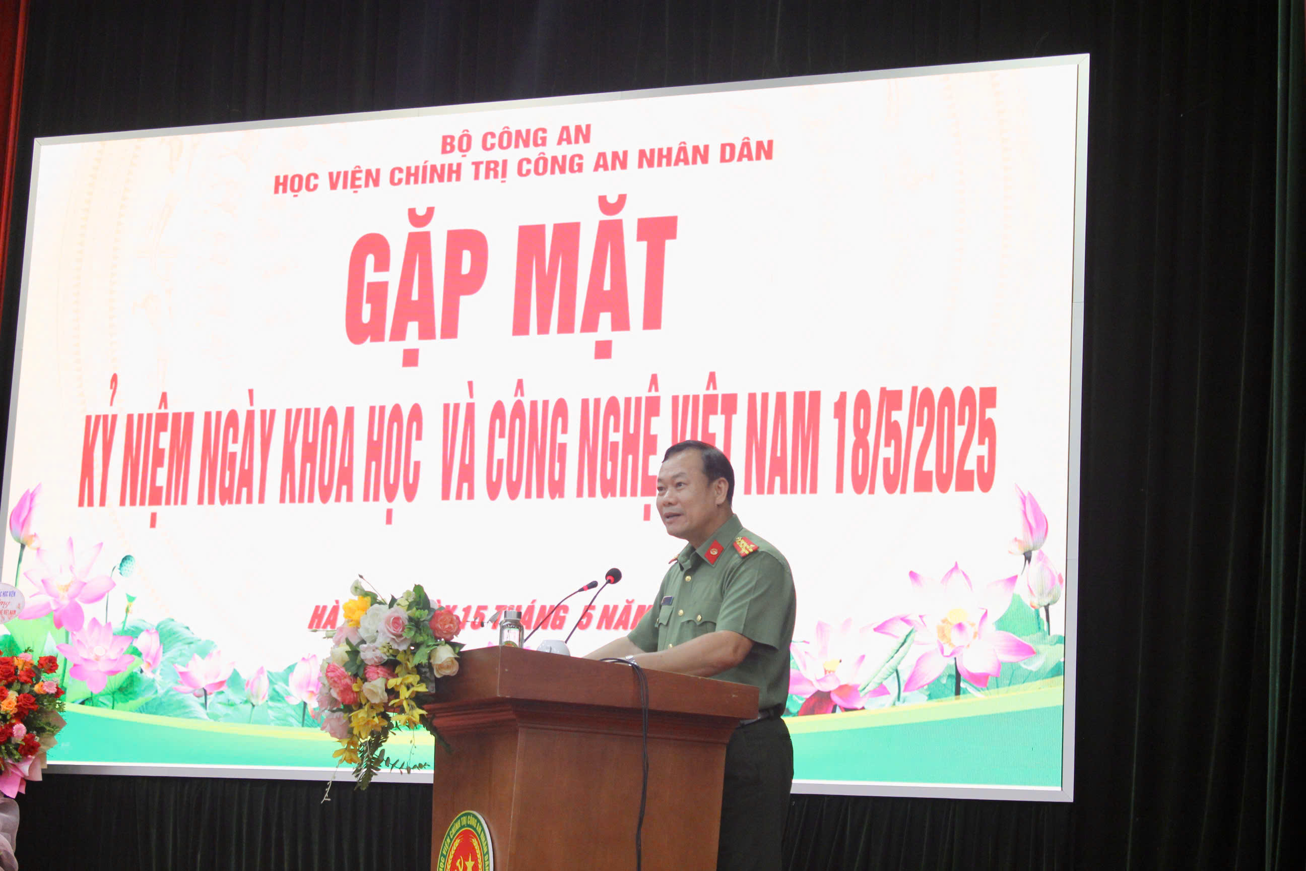 Chiều ngày 15/5/2025, Học viện Chính trị Công an nhân dân tổ chức Lễ kỷ niệm Ngày Khoa học và Công nghệ Việt Nam 18/5, đồng thời hưởng ứng Ngày Sáng tạo và Đổi mới sáng tạo Thế giới năm 2025. Đồng chí PGS,TS.NGƯT, Trung tướng Phan Xuân Tuy, Bí thư Đảng ủy, Giám đốc Học viện chủ trì buổi lễ.