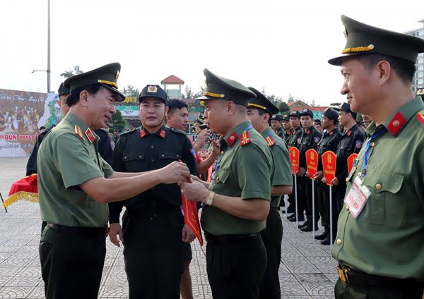 Thứ trưởng Trần Quốc Tỏ trao cờ tham dự hội thao và động viên các đoàn tham gia thi đấu ở Hội thao CAND năm 2023.