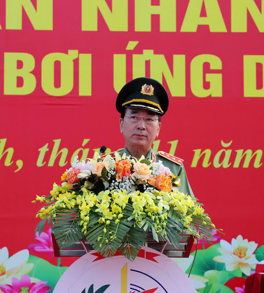 Thứ trưởng Trần Quốc Tỏ thay mặt Đảng uỷ Công an Trung ương, lãnh đạo Bộ Công an phát biểu khai mạc Hội thao CAND năm 2023.