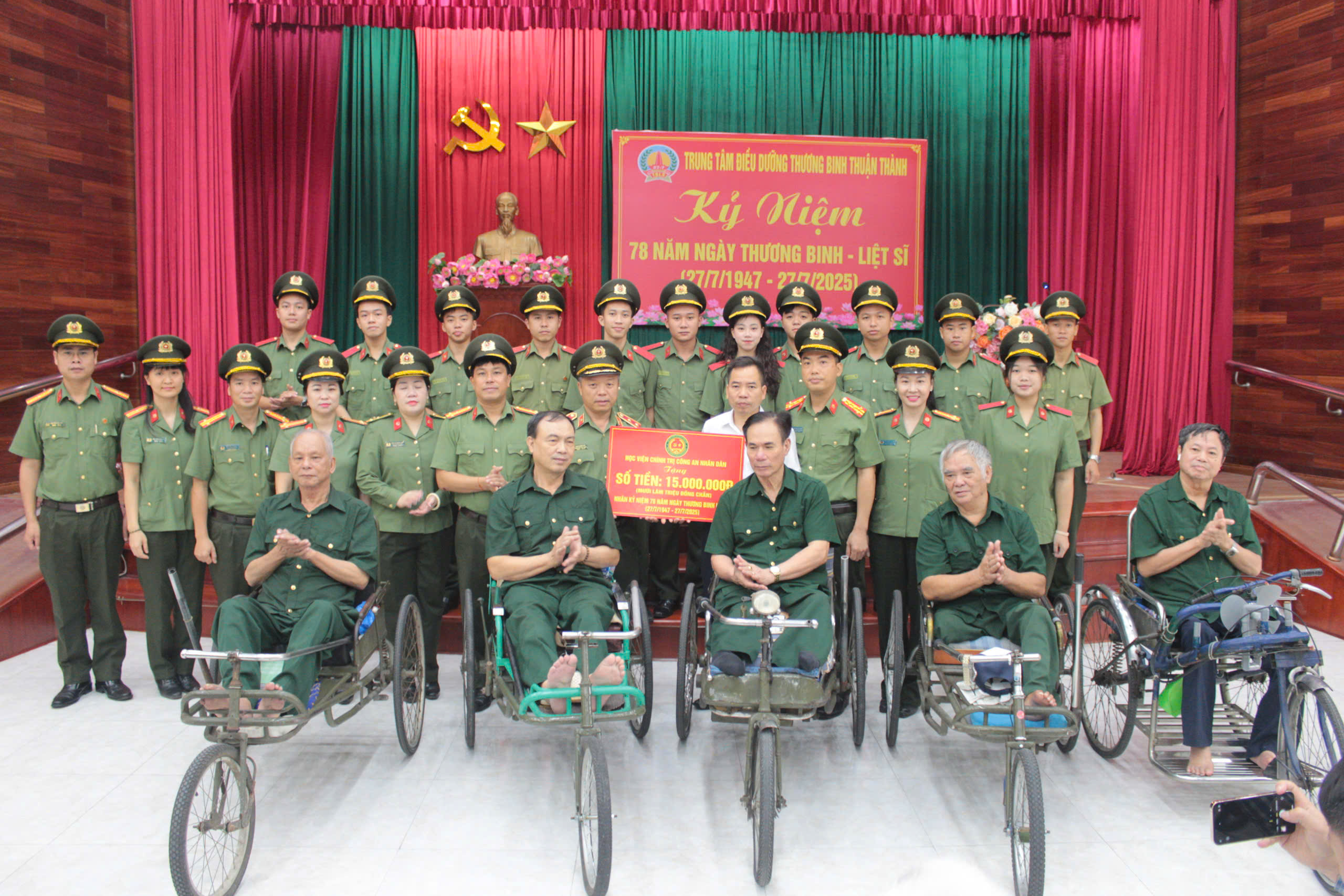 Nhân dịp kỷ niệm 78 năm Ngày Thương binh – Liệt sỹ (27/7/1947 – 27/7/2025), ngày 21/7/2025, Đoàn công tác Học viện Chính trị Công an nhân dân do đồng chí Trung tướng, PGS.TS. NGƯT Phan Xuân Tuy – Bí thư Đảng ủy, Giám đốc Học viện làm Trưởng đoàn đã đến thăm, tặng quà các đồng chí thương binh, bệnh binh đang điều dưỡng tại Trung tâm Điều dưỡng thương binh Thuận Thành, tỉnh Bắc Ninh.