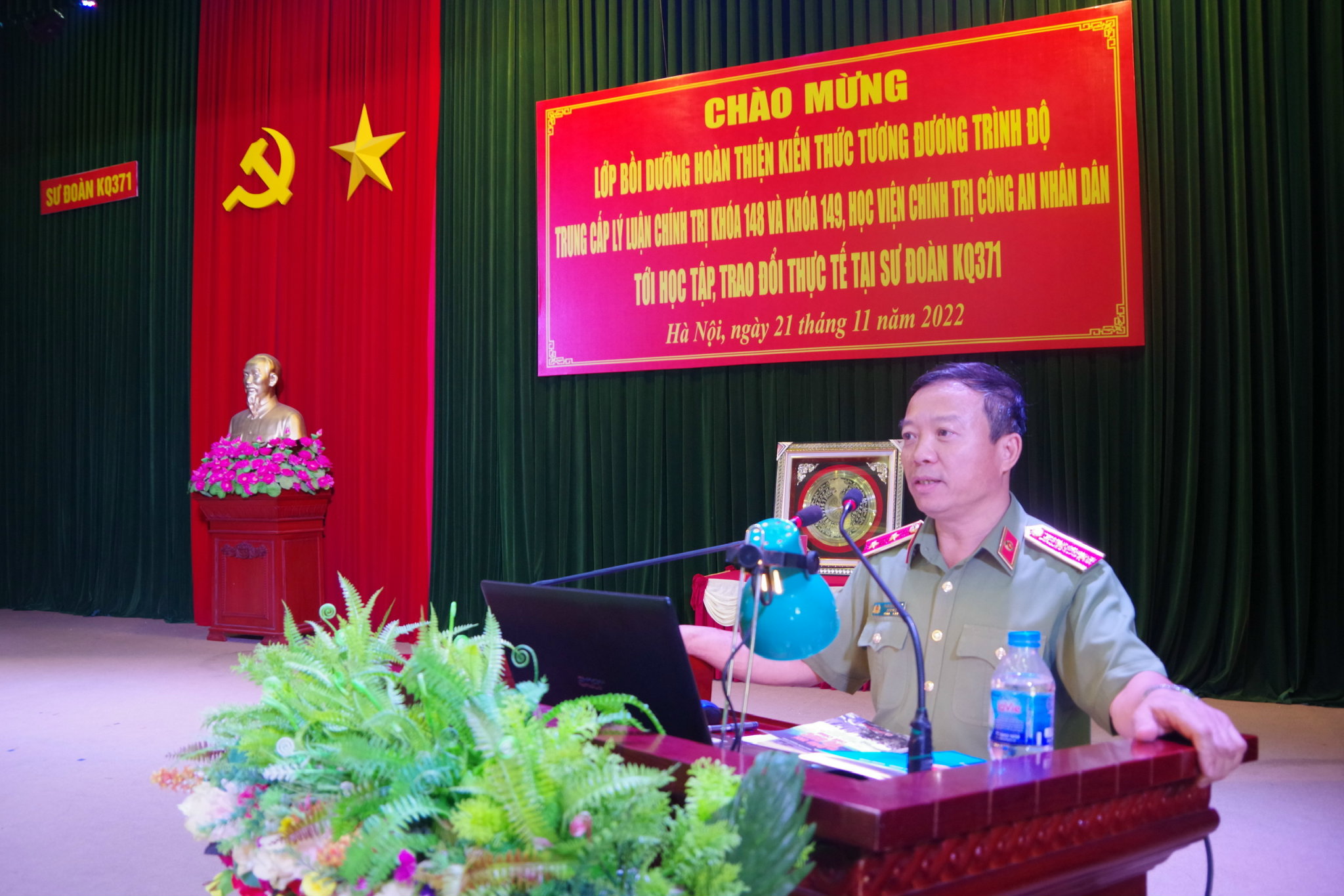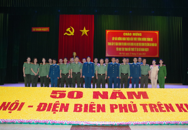 Trong không khí vui tươi, phấn khởi của Ngày Đại đoàn kết dân tộc Việt Nam, hướng tới kỷ niệm 50 năm chiến thắng “Hà Nội - Điện Biên Phủ trên không” (12/1972 - 12/2022), ngày 21/11/2022, Đảng ủy, Ban Giám đốc Học viện Chính trị CAND do đồng chí Trung tướng, PGS.TS Phan Xuân Tuy, Bí thư Đảng ủy, Giám đốc Học viện làm Trưởng Đoàn đã đến thăm và làm việc với Sư đoàn không quân 371, Quân chủng phòng không không quân, Bộ Quốc phòng. Tham gia đoàn công tác có đại diện lãnh đạo các đơn vị chức năng trong Học viện và toàn thể học viên hai lớp bồi dưỡng hoàn thiện kiến thức tương đương trình độ Trung cấp lý luận chính trị, Khóa 148 và Khóa 149 để học tập, trao đổi thực tế. Tiếp đoàn công tác, có đồng chí Đại tá Nguyễn Huy Tuấn, Bí thư Đảng ủy, Chính ủy Sư đoàn; đồng chí Đại tá Nguyễn Văn Thiện, Phó Sư đoàn trưởng, Tham mưu trưởng Sư đoàn, đại diện cơ quan các phòng và Tiểu đoàn Căn cứ sân bay Nội Bài, Sư đoàn không quân 371, Quân chủng phòng không không quân, Bộ Quốc phòng.