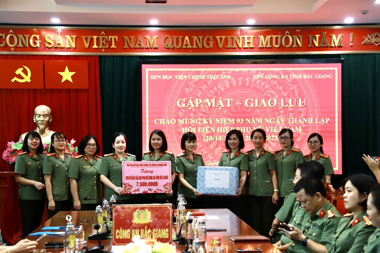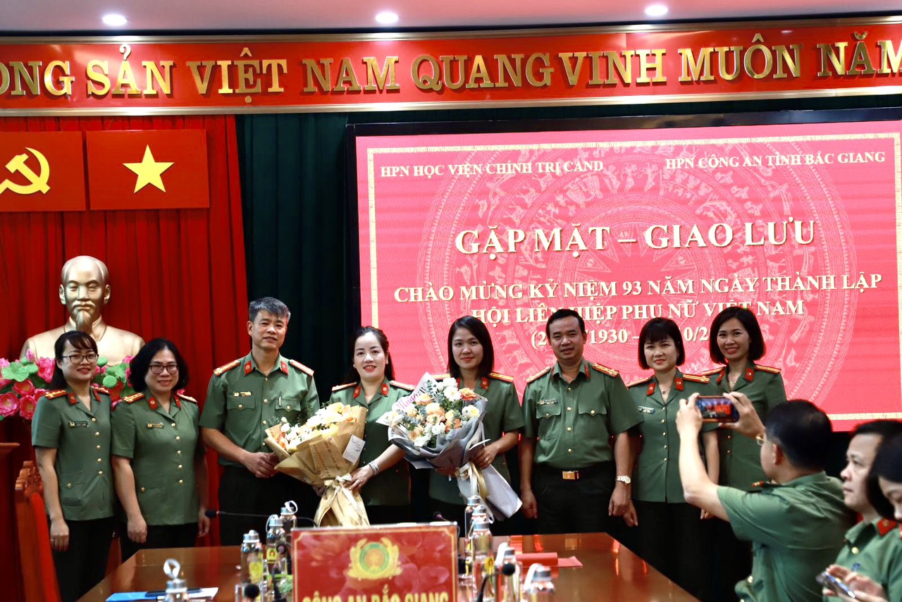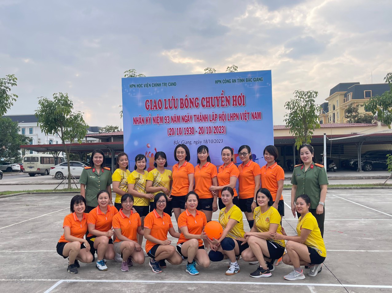 Nhân kỷ niệm 93 năm ngày thành lập Hội Liên hiệp Phụ nữ Việt Nam (20/10/1930-20/10/2023); hướng tới chào mừng kỷ niệm 10 năm Ngày Thủ tướng Chính phủ ký quyết định thành lập Học viện Chính trị CAND (01/3/2014-01/3/2024), ngày 18/10/2023, Học viện Chính trị CAND tổ chức buổi gặp mặt, giao lưu với Hội Phụ nữ Công an tỉnh Bắc Giang và Công an xã Dĩnh Trì, Công an thành phố Bắc Giang; đồng chí Đại tá, TS Tống Văn Khuông, Phó Giám đốc Học viện làm trưởng đoàn. Tham gia Đoàn có đại diện lãnh đạo các đơn vị chức năng, Ban Chấp hành Hội phụ nữ Học viện cùng một số hội viên tiêu biểu của Hội phụ nữ Học viện năm học 2022-2023.