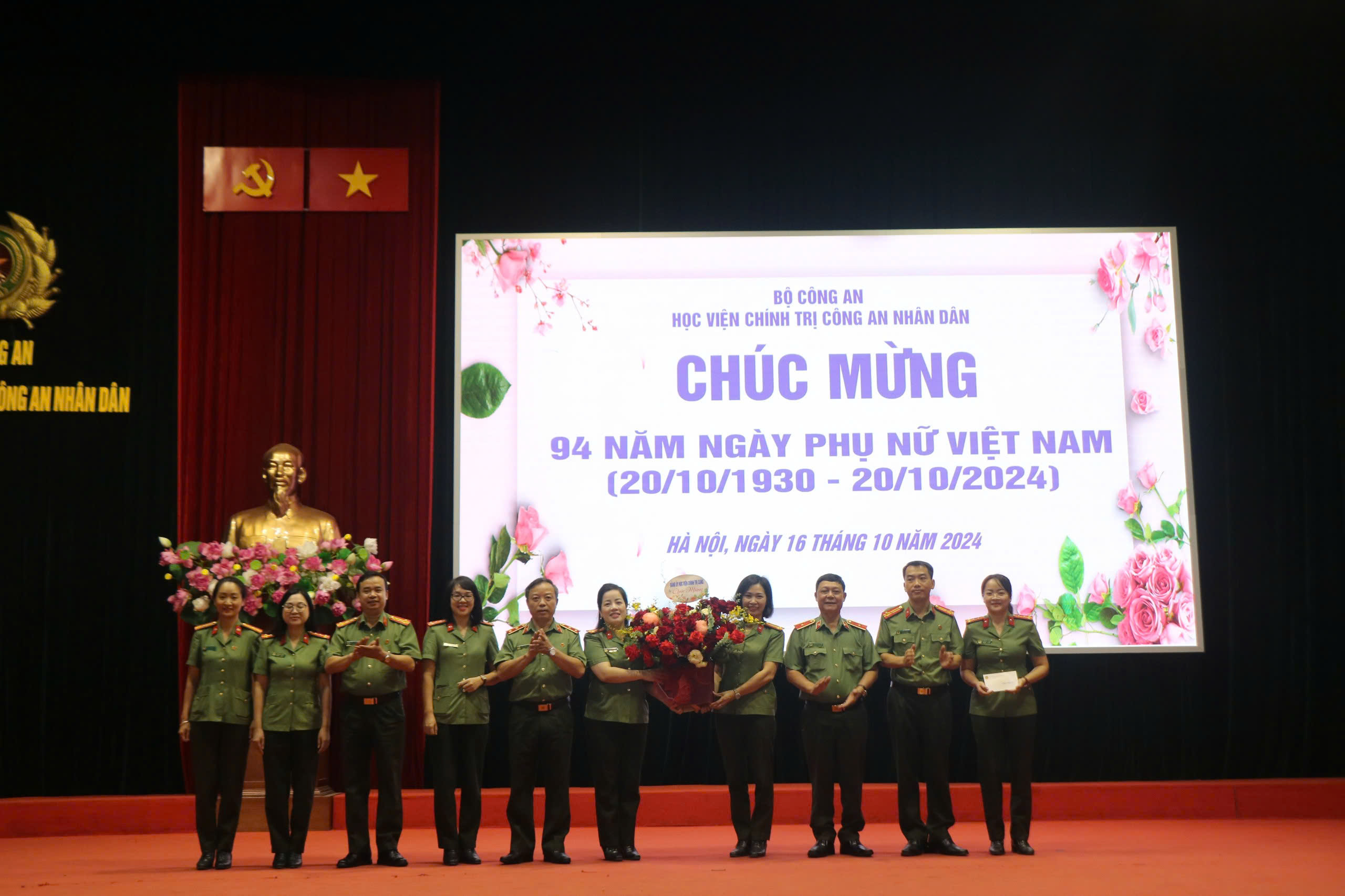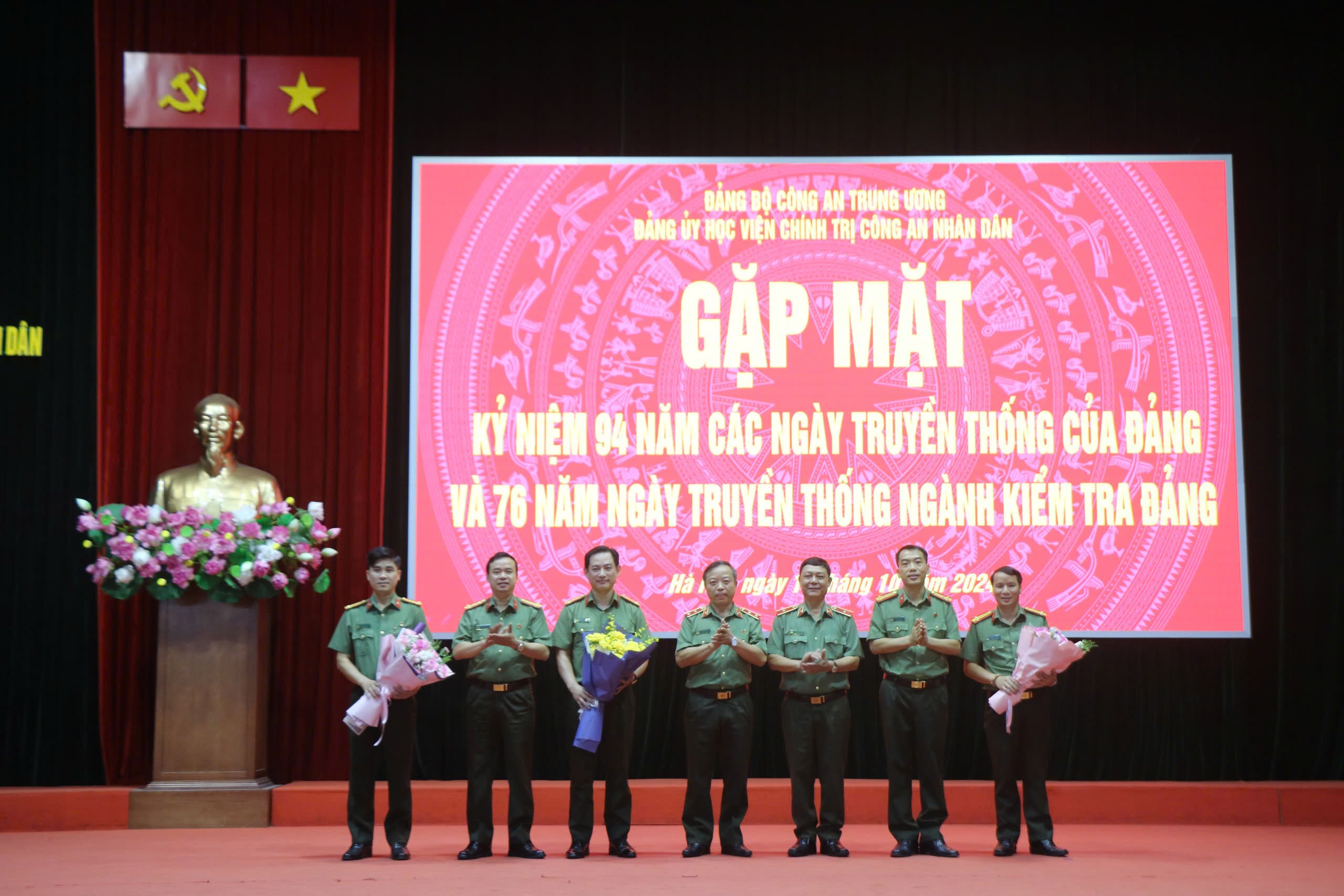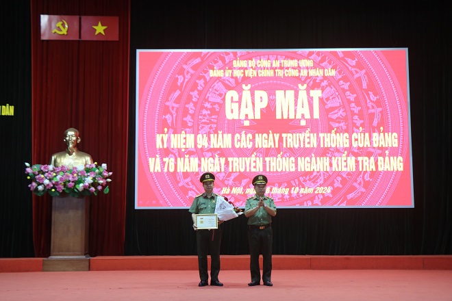Ngày 16/10/2024, Đảng ủy Học viện Chính trị CAND tổ chức gặp mặt kỷ niệm 94 năm các ngày truyền thống của Đảng, 76 năm ngày truyền thống ngành kiểm tra Đảng; 94 năm ngày thành lập Hội Liên hiệp phụ nữ Việt Nam và quán triệt kết quả các Hội nghị sơ kết công tác Công an 09 tháng đầu năm năm 2024; sơ kết 02 năm thực hiện Nghị quyết số 12 của Đảng ủy CATW và chỉ thị số 11 của Bộ trưởng Bộ Công an. Đồng chí PGS.TS, Trung tướng Phan Xuân Tuy, Bí thư Đảng ủy, Giám đốc Học viện Chính trị CAND chủ trì buổi gặp mặt và quán triệt kết quả các Hội nghị.