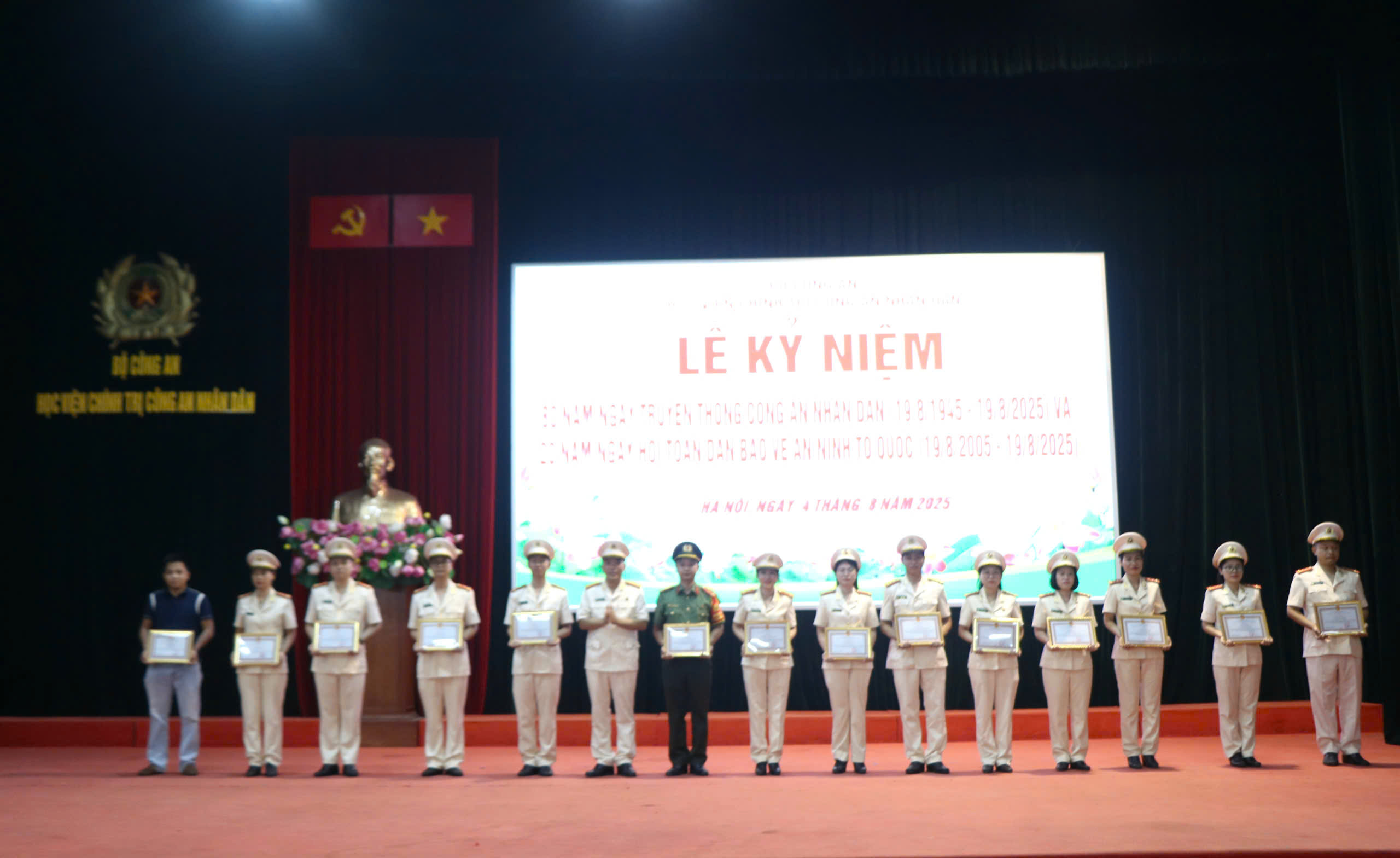 Với truyền thống vẻ vang, tự hào của lực lượng CAND, trong thời khắc thiêng liêng và ý nghĩa của Lễ kỷ niệm 80 năm Ngày truyền thống CAND, Học viện Chính trị đã tổ chức trao khen thưởng đợt 4 phong trào thi đua đặc biệt kỷ niệm 80 năm Ngày truyền thống Công an nhân dân (19/8/1945 – 19/8/2025), 20 năm Ngày hội toàn dân bảo vệ an ninh Tổ quốc (19/8/2005 – 19/8/2025) đối với 03 đồng chí trong Phó Giám đốc Học viện và 54 cá nhân thuộc Học viện.