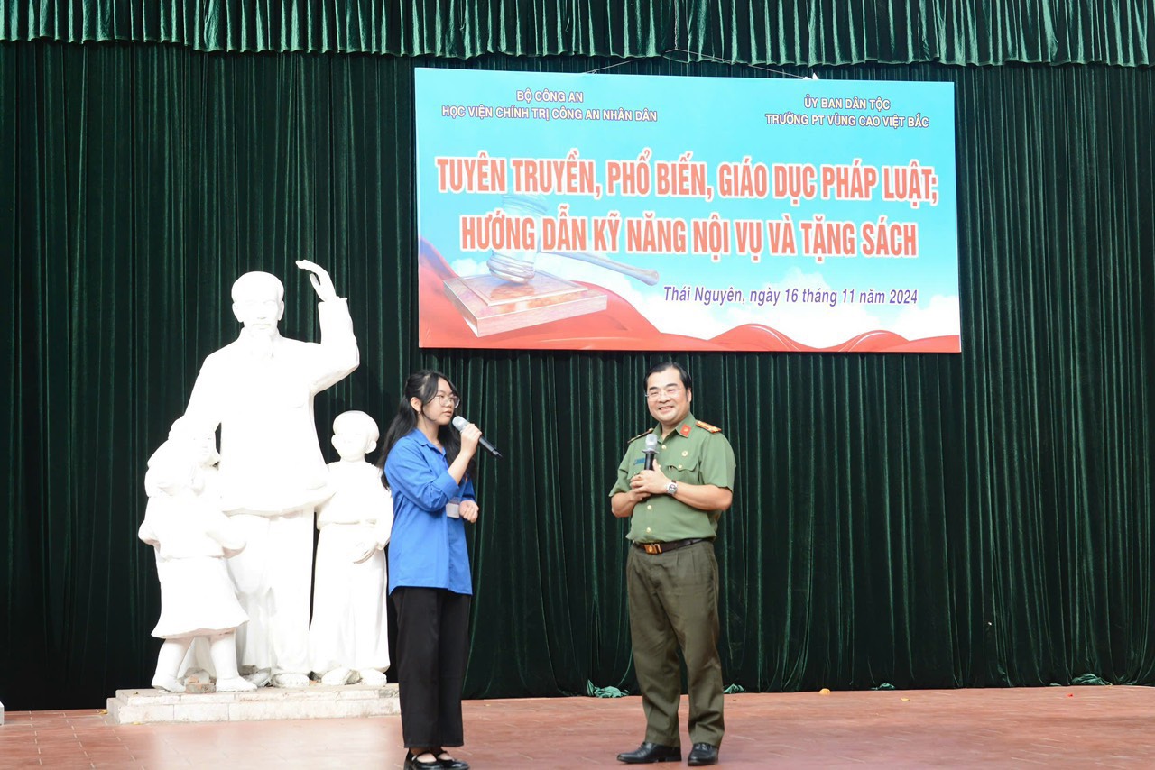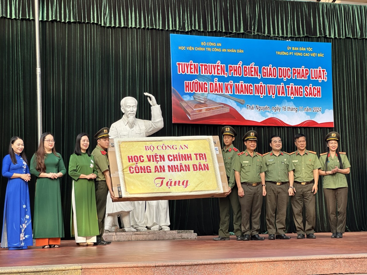 Hưởng ứng ngày Pháp luật nước Cộng hòa xã hội chủ nghĩa Việt Nam (09/11) và hướng đến kỷ niệm 42 năm ngày Nhà giáo Việt Nam; sáng ngày 16/11/2024, Đoàn công tác của Học viện Chính trị CAND do đồng chí Thiếu tướng, TS Nguyễn Như Lôi, Phó Bí thư Đảng ủy, Phó Giám đốc Học viện làm Trưởng đoàn đã tổ chức các hoạt động tuyên truyền, phổ biến, giáo dục pháp luật; hướng dẫn kỹ năng nội vụ và tặng sách tại trường phổ thông Vùng cao Việt Bắc, tỉnh Thái Nguyên