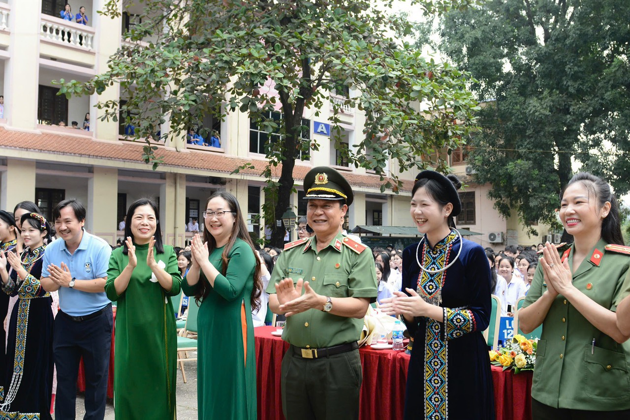 Học viên Học viện Chính trị CAND là cựu học sinh trường Phổ thông Vùng cao Việt Bắc tặng hoa, tri ân thầy, cô giáo;