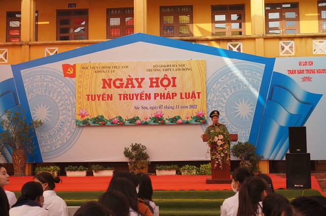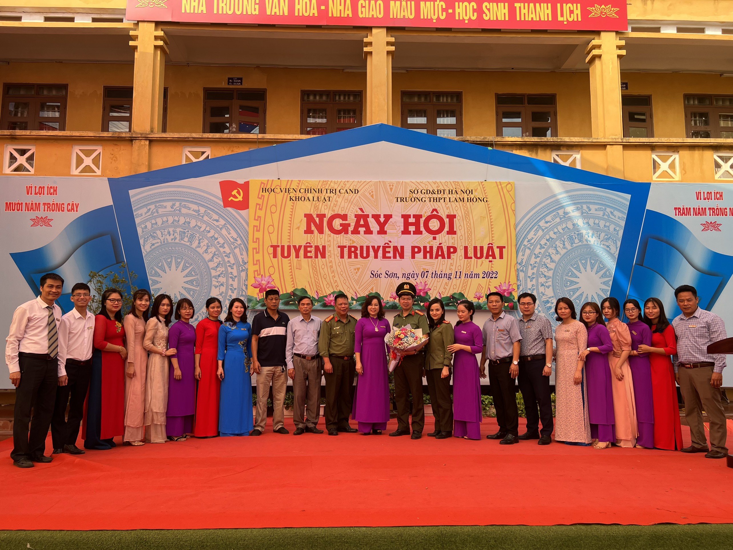 Hưởng ứng Ngày Pháp luật nước Cộng hòa xã hội chủ nghĩa Việt Nam (09/11/2022), sáng ngày 07/11/2022, Học viện Chính trị Công an nhân dân phối hợp với Trường THPT Lam Hồng, huyện Sóc Sơn, Thành phố Hà Nội tổ chức thành công buổi tuyên truyền, phổ biến, giáo dục, pháp luật cán bộ, giảng viên, học sinh tại trường THPT Lam Hồng.