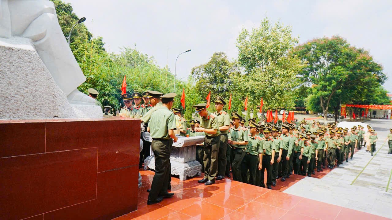 Ngay sau lễ đón, đoàn học viên cùng lãnh đạo Học viện đã đến Công viên tượng đài Chủ tịch Hồ Chí Minh tổ chức lễ dâng hương, báo công với Bác. Trước anh linh của Người, tập thể lãnh đạo, cán bộ, giảng viên và học viên Học viện Chính trị CAND bày tỏ lòng biết ơn vô hạn đối với công lao to lớn của Chủ tịch Hồ Chí Minh vĩ đại; đồng thời khẳng định quyết tâm tuyệt đối trung thành với Tổ quốc, với Đảng, với Nhân dân; không ngừng học tập, tu dưỡng, rèn luyện để xứng đáng với niềm tin yêu của Đảng, Nhà nước và Nhân dân, góp phần tô thắm truyền thống anh hùng, vẻ vang của lực lượng Công an nhân dân.