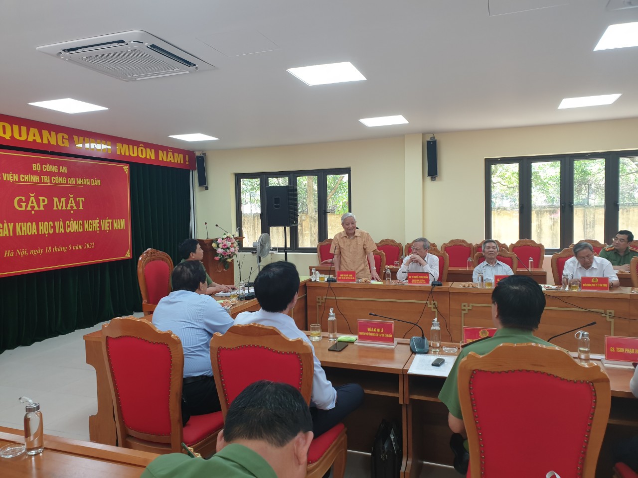 Sáng ngày 18/5/2022, Học viện Chính trị Công an nhân dân tổ chức buổi gặp mặt kỷ niệm ngày Khoa học và Công nghệ Việt Nam với sự tham dự của các chuyên gia, nhà khoa học, nhà hoạt động thực tiễn và đại diện lãnh đạo các đơn vị, cơ quan quản lý khoa học, các chủ nhiệm đề tài khoa học cấp bộ do Học viện chủ trì: Nhà báo Hà Đăng, nguyên Ủy viên Trung ương Đảng, nguyên Tổng Biên tập Báo Nhân Dân, GS. TS Nguyễn Trọng Chuẩn, Phó Chủ tịch Hội Triết học Việt Nam, GS. TS Phan Trung Lý, nguyên Ủy viên Ủy ban Thường vụ Quốc hội, Chủ nhiệm Ủy ban Pháp luật của Quốc hội, Trung tướng, GS. TS Nguyễn Ngọc Anh, Ban Nghiên cứu chuyên đề giúp việc Bộ trưởng Bộ Công an, GS. TS Nguyễn Hùng Hậu, Học viện Chính trị Quốc gia Hồ Chí Minh, GS. TS Nguyễn Văn Tài, nguyên Phó Giám đốc Học viện Chính trị, Bộ Quốc phòng, GS. TS Phạm Hoàng Hải, GS. TS Nguyễn Khanh Vân, Viện Địa lý, Viện Hàn lâm khoa học công nghệ Việt Nam, PGS. TS Lê Văn Cương, nguyên Viện trưởng Viện Khoa học, chiến lược Công an, PGS. TS Nguyễn Bình Ban, nguyên Viện trưởng Viện Lịch sử Công an nhân dân, TS Nhị Lê, nguyên Phó Tổng Biên tập Tạp chí Cộng sản, TS Nguyễn Hồng Sơn, Chánh văn phòng Hội đồng Lý luận Trung ương…