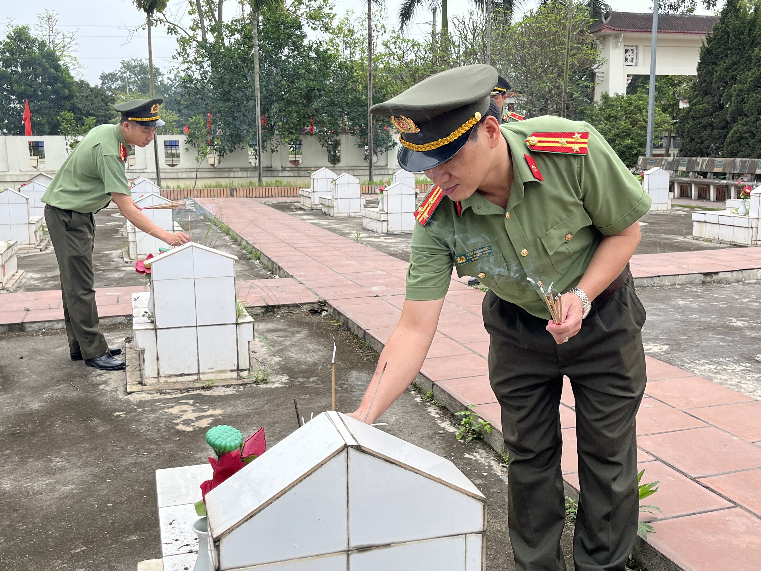 Sau lễ dâng hương tại Đài tưởng niệm, Đoàn công tác Học viện đã thắp hương lên các phần mộ để tưởng nhớ công ơn của các anh hùng liệt sỹ. Đây là việc làm thể hiện lòng tri ân sâu sắc của Đảng bộ Học viện Chính trị Công an nhân dân đối với các anh hùng Liệt sỹ đã chiến đấu, hy sinh cho sự nghiệp cách mạng, bảo vệ Tổ quốc của dân tộc. Qua đó, giáo dục mỗi cán bộ, chiến sĩ, học viên Học viện tiếp tục noi gương cha anh, quyết tâm bảo vệ nền độc lập của dân tộc, xây dựng đất nước ngày càng phát triển giàu đẹp.