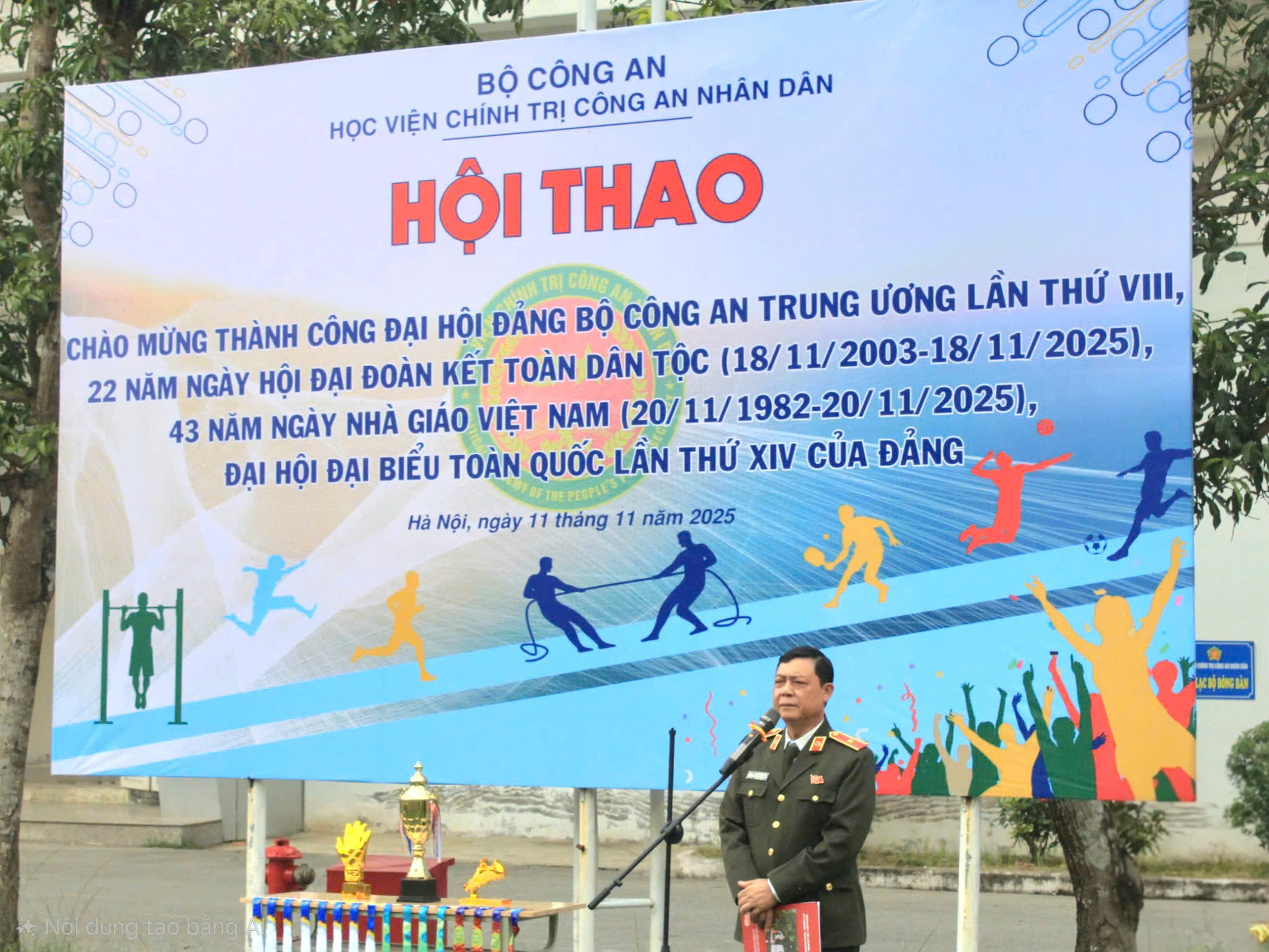Nhằm triển khai hiệu quả phong trào thi đua đặc biệt chào mừng kỷ niệm các ngày lễ lớn trong năm học 2025 - 2026; chiều ngày 11/11/2025, Học viện Chính trị Công an nhân dân long trọng tổ chức khai mạc hội thao chào mừng thành công Đại hội Đảng bộ Công an Trung ương lần thứ VIII nhiệm kỳ 2025 – 2030, 22 năm Ngày hội đại đoàn kết toàn dân tộc (18/11/2003 – 18/11/2025), 43 năm Ngày nhà giáo Việt Nam (20/11/1982 – 20/11/2025).