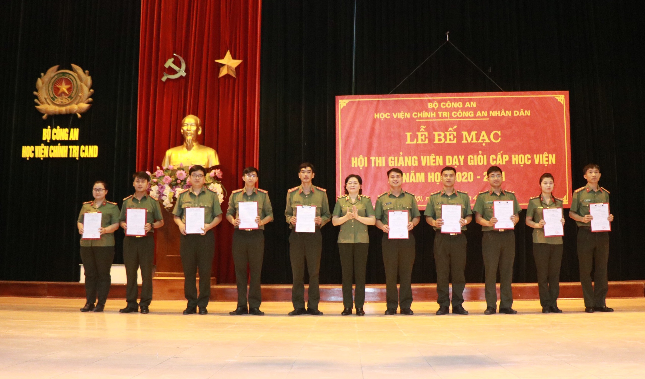 Ngày 07/4/2021, Học viện Chính trị Công an nhân dân long trọng tổ chức Lễ Bế mạc Hội thi giảng viên dạy giỏi cấp Học viện, năm học 2020 - 2021. Dự và chủ trì buổi lễ, có đồng chí Thiếu tướng, PGS.TS Đinh Ngọc Hoa, Phó Bí thư Đảng ủy, Phó Giám đốc Học viện, Phó Trưởng Ban Tổ chức Hội thi; tham dự buổi lễ còn có đồng chí Thượng tá, TS Tống Văn Khuông, Ủy viên Ban Thường vụ Đảng ủy, Phó Giám đốc Học viện, đại diện lãnh đạo Phòng Quản lý công tác dạy và học, Cục Đào tạo – Bộ Công an, đại diện lãnh đạo các phòng chức năng thuộc Học viện, thành viên Ban Tổ chức Hội thi, Ban Giám khảo, Ban đề thi và chấm thi kiểm tra hiểu biết và toàn thể giảng viên Học viện.