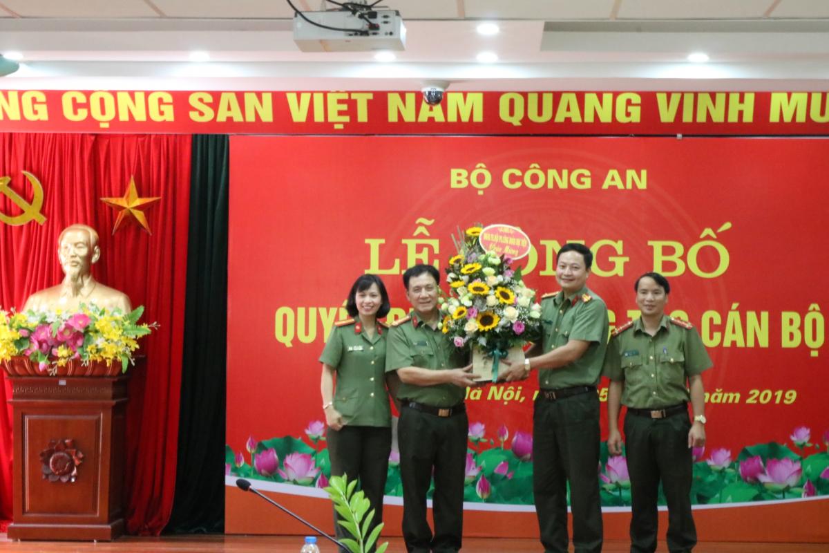 | Đồng chí Thiếu tướng, PGS.TS Trần Vi Dân, Bí thư Đảng ủy, Giám đốc Học viện Chính trị Công an nhân dân trao Quyết định nghỉ công tác chờ hưởng chế độ hưu trí đối với đồng chí Đại tá Nguyễn Văn Quyền |