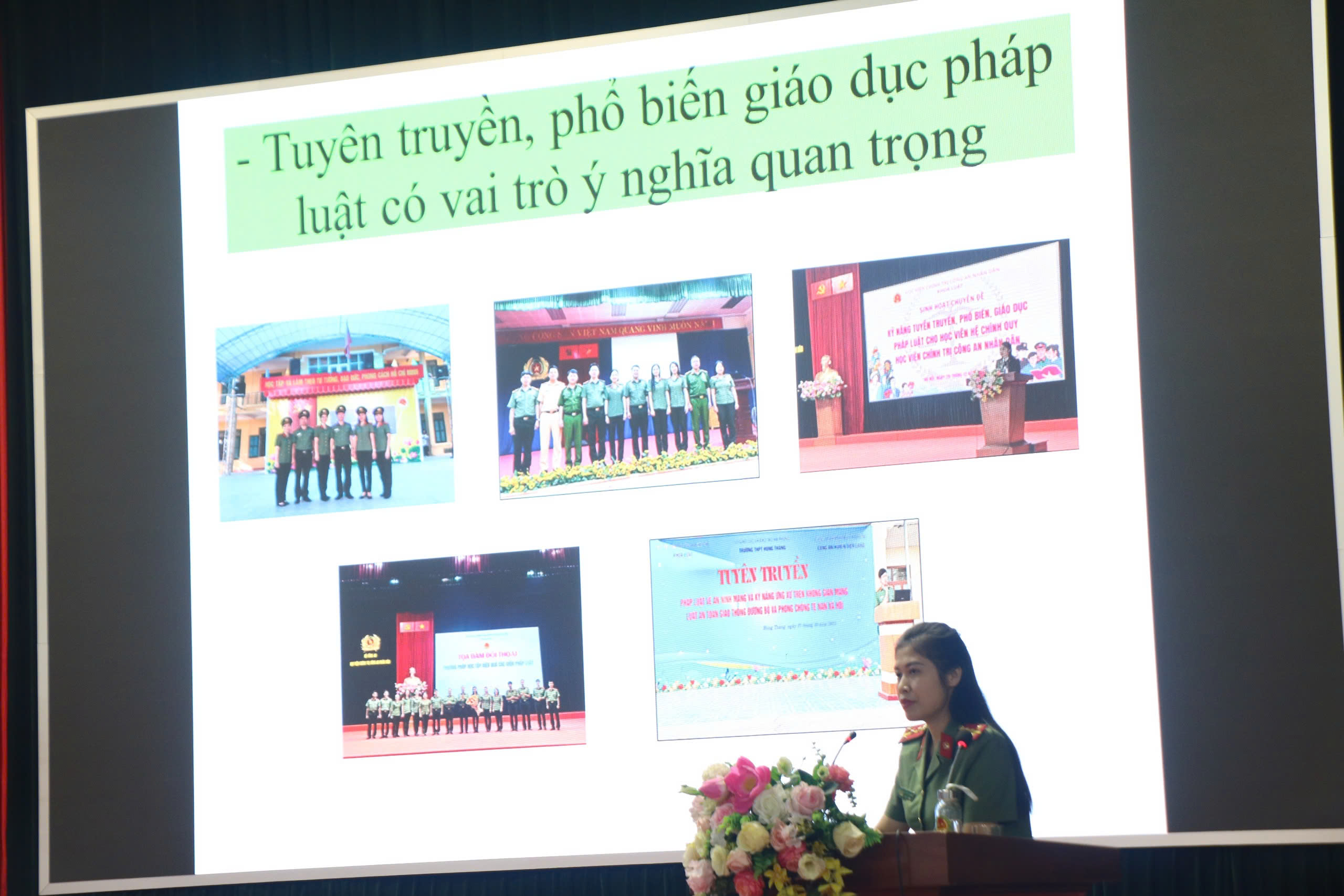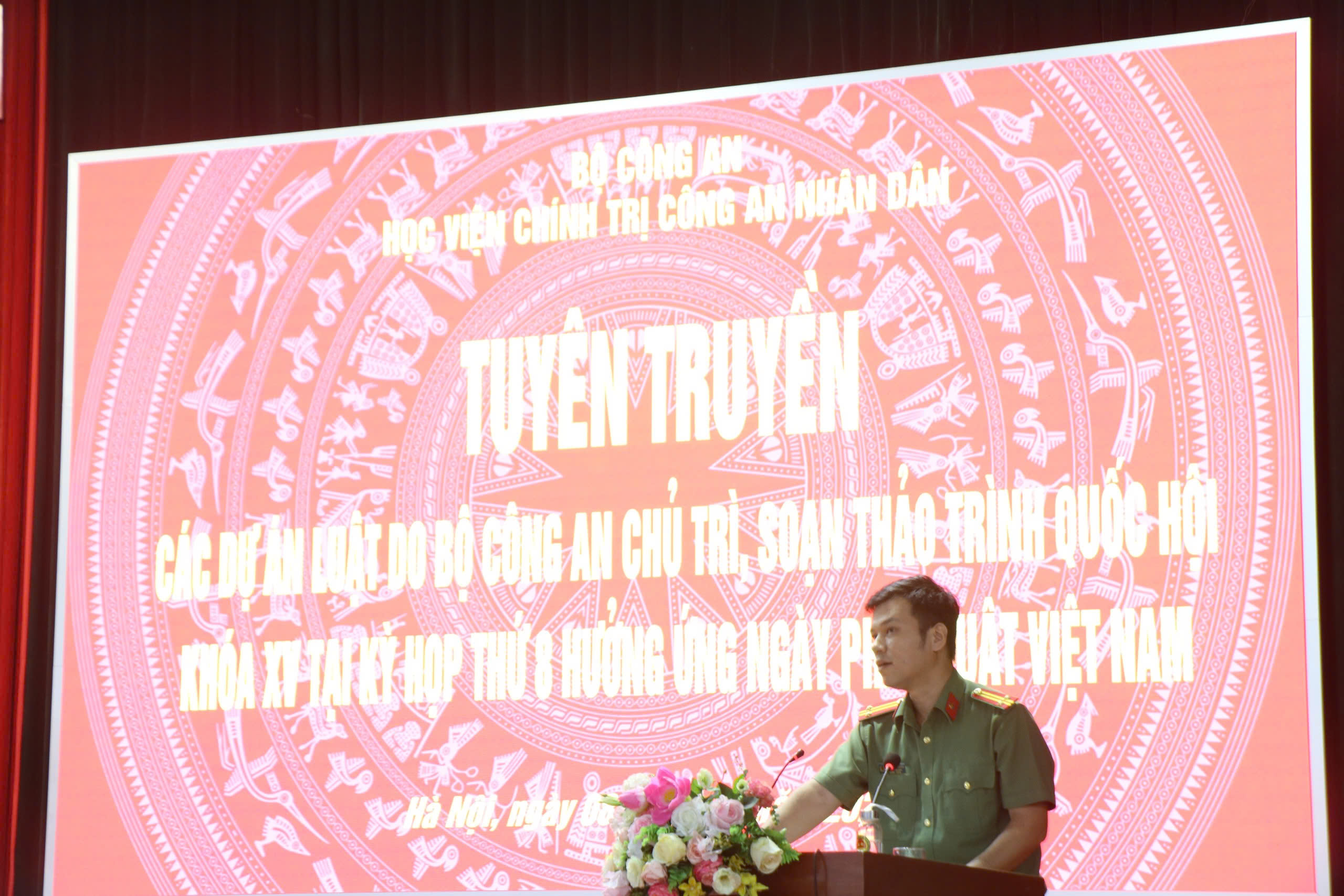 Trong khuôn khổ chương trình, đồng chí Trung tướng, PGS.TS,NGƯT Phan Xuân Tuy, Giám đốc Học viện cùng các đồng chí Trung tá Ngô Thành Huyên, Phó trưởng khoa Ngoại ngữ-Tin học và Đại úy Nguyễn Thị Thanh Nga, Giảng viên Khoa Luật đã tuyên truyền, giới thiệu các nội dung quan trọng của dự thảo Luật Dữ liệu; Thượng tá Nguyễn Anh Tuấn, Trưởng khoa Luật đã tuyên truyền, phổ biến những nội dung cơ bản của dự thảo Luật Phòng cháy, chữa cháy và Luật Buôn bán người tới cán bộ, giảng viên Học viện.