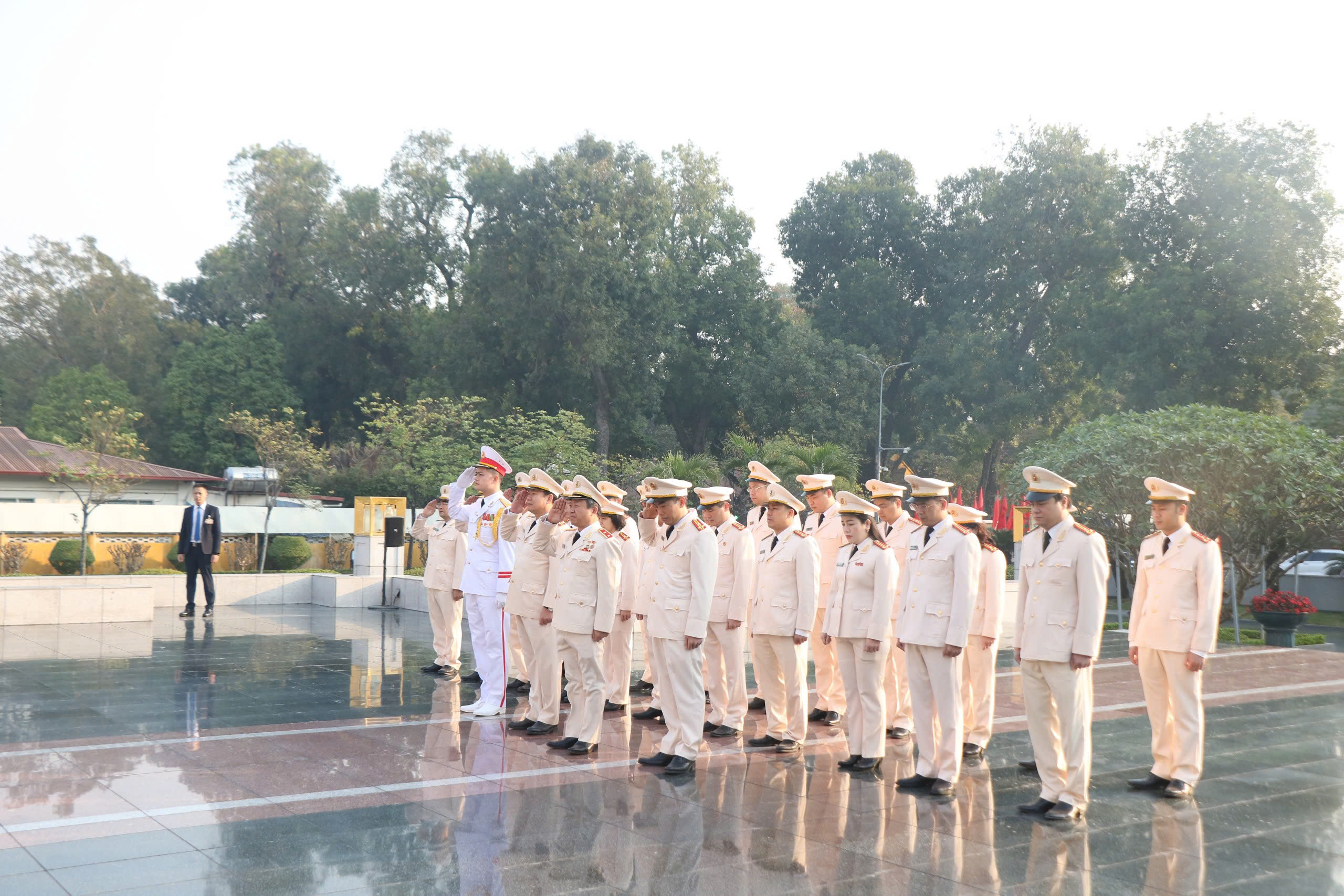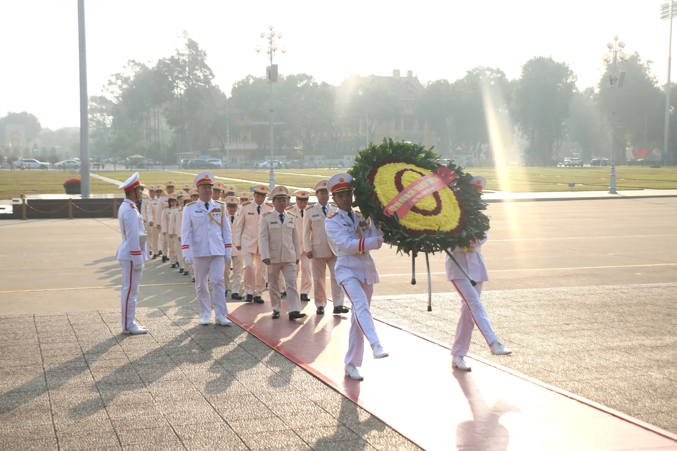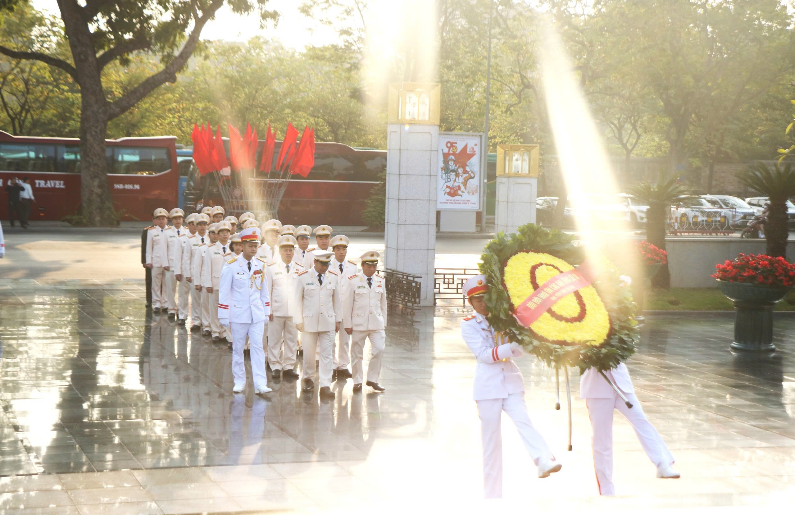 Trong không khí thiêng liêng, đoàn đại biểu thành kính dâng hương, dâng hoa tưởng niệm, bày tỏ lòng biết ơn vô hạn và kính trọng sâu sắc đối với Chủ tịch Hồ Chí Minh - Người đã cống hiến, hy sinh trọn đời cho sự nghiệp giải phóng dân tộc, giải phóng giai cấp, đấu tranh cho sự nghiệp hòa bình và hạnh phúc của dân tộc Việt Nam. Trước anh linh Chủ tịch Hồ Chí Minh, các đại biểu thành kính tưởng nhớ và bày tỏ lòng biết ơn vô hạn Chủ tịch Hồ Chí Minh vĩ đại, Anh hùng giải phóng dân tộc, Danh nhân văn hóa thế giới, Người cha thân yêu của các lực lượng vũ trang nhân dân, Người sáng lập, chăm lo xây dựng, giáo dục, rèn luyện lực lượng Công an nhân dân Việt Nam anh hùng.