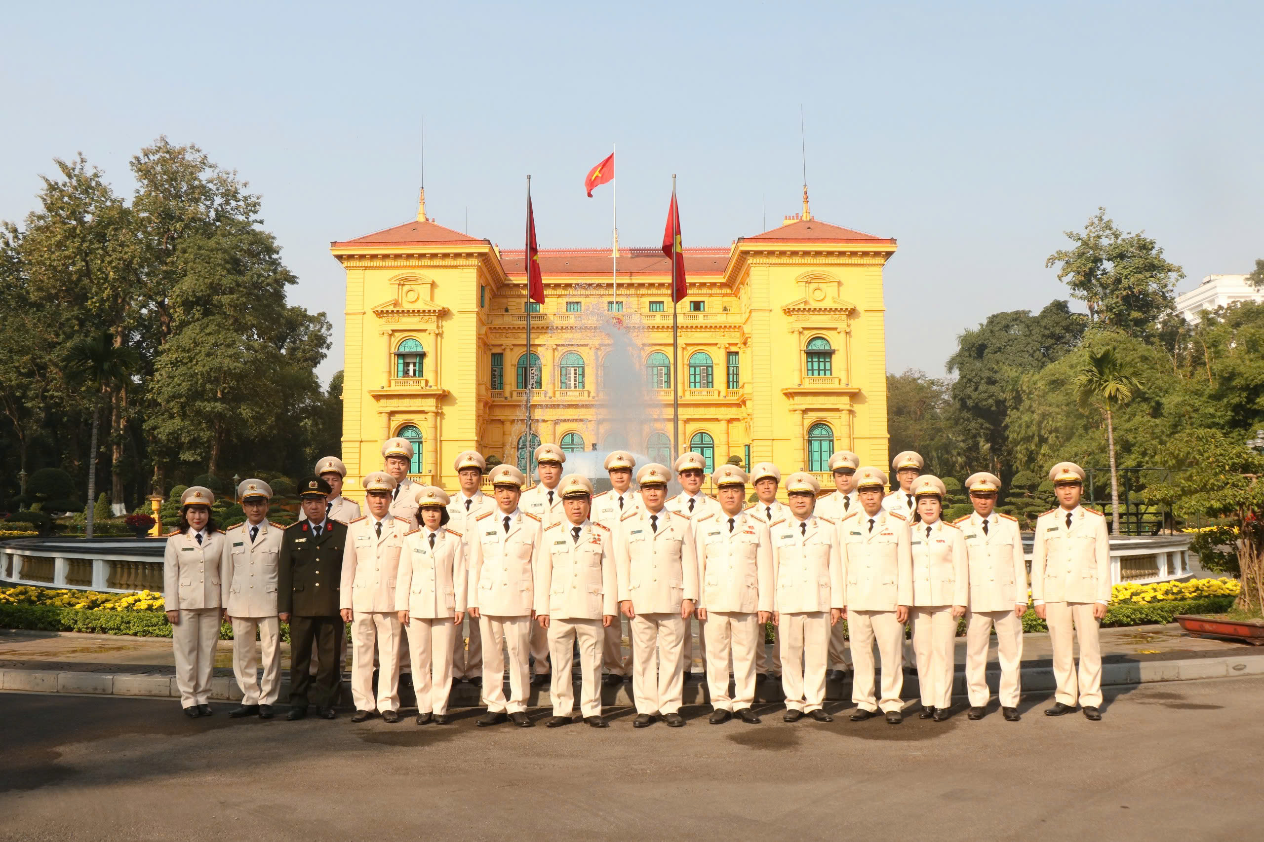 Đoàn chụp ảnh lưu niệm tại Phủ Chủ tịch