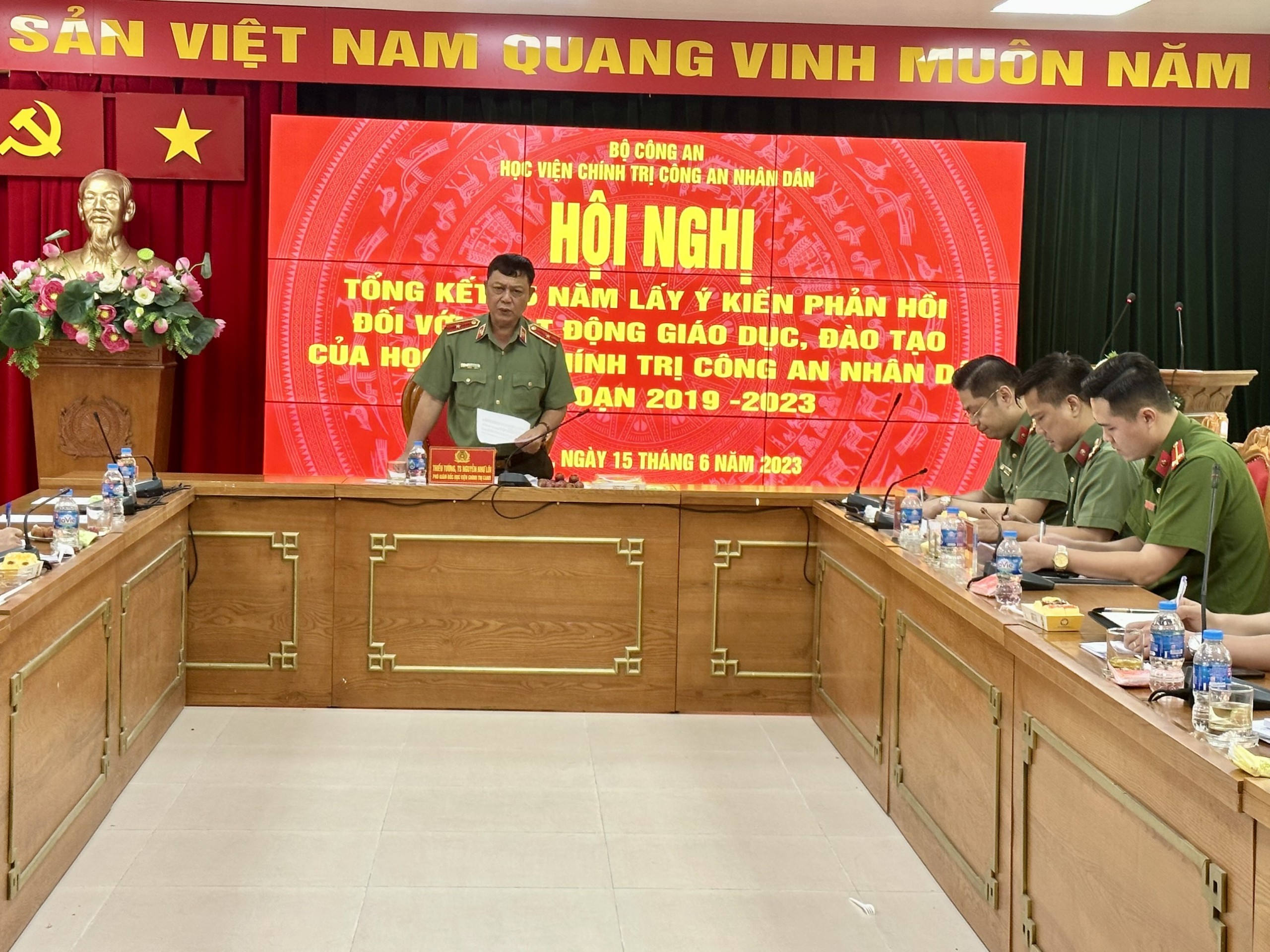 Phát biểu tại Hội nghị, đồng chí Thiếu tướng Nguyễn Như Lôi, Ủy viên Ban Thường vụ Đảng ủy, Phó Giám đốc Học viện Chính trị CAND khẳng định công tác lấy phiếu ý kiến phản hồi đối với hoạt động giáo dục, đào tạo là một nội dung rất quan trọng, đã được các trường Công an nhân dân nói chung, Học viện Chính trị CAND nói riêng quan tâm thực hiện, góp phần đổi mới và cải tiến chất lượng công tác giáo dục, đào tạo; nâng cao tinh thần, trách nhiệm của cán bộ, giảng viên trong việc thực hiện mục tiêu, nhiệm vụ giáo dục, đào tạo; hướng đến xây dựng đội ngũ cán bộ, giảng viên có chất lượng cao; đảm bảo tính khách quan, minh bạch trong hoạt động giáo dục, đào tạo. Đồng thời, đây là kênh thông tin quan trọng để Nhà trường có thêm cơ sở trong nhận xét, đánh giá đội ngũ giảng viên, cán bộ quản lý giáo dục và nhìn nhận lại toàn bộ hoạt động của Nhà trường. Do vậy, cần nhận thức đúng đắn về vị trí, vai trò quan trọng của hoạt động lấy ý kiến của các bên liên quan về hoạt động giáo dục, đào tạo đối với sự nghiệp đổi mới hoạt động giáo dục nói chung và xây dựng, phát triển Học viện Chính trị CAND thực sự sớm trở thành cơ sở đào tạo hàng đầu về lý luận chính trị nói riêng.