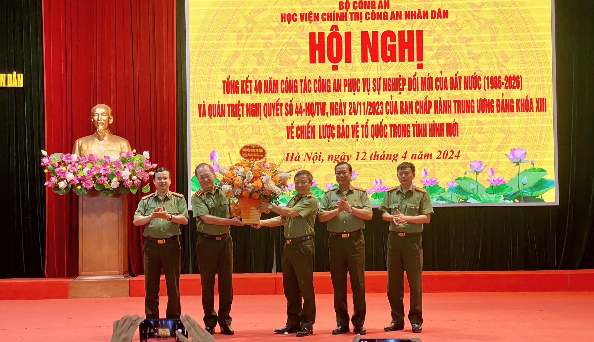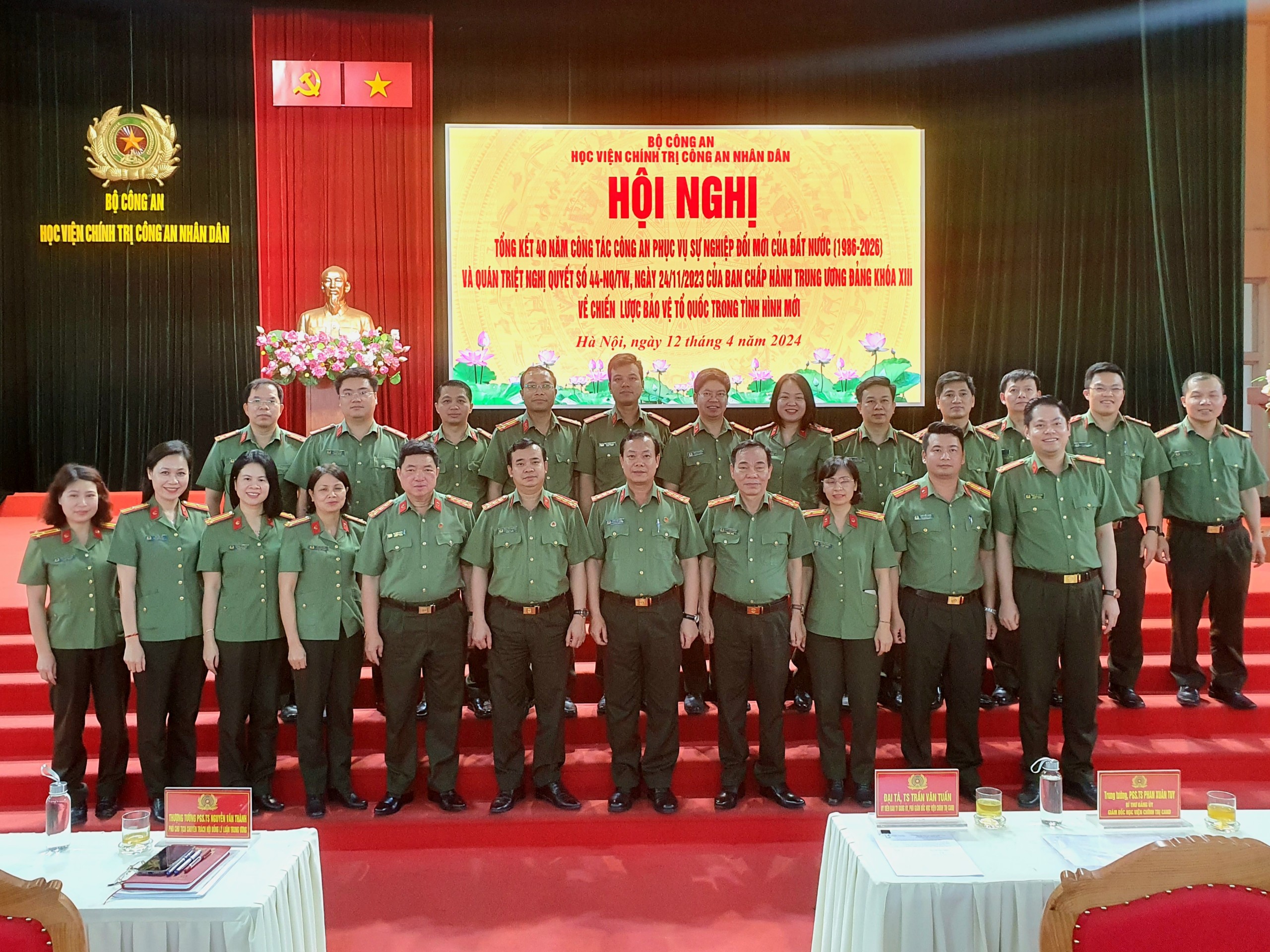 Thực hiện kế hoạch số 441/KH-BCA ngày 29/8/2023 của Bộ Công ăn về việc tổng kết 40 năm công tác công an phục vụ sự nghiệp đổi mới của đất nước (1986 -2026); kế hoạch số 294/KH-T03-V1 ngày 13/10/2023 của Học viện Chính trị CAND về tổng kết 40 năm công tác công ăn phục vụ sự nghiệp đổi mới của Học viện Chính trị CAND và quán triệt thực hiện Nghị quyết số 44-NQ/TW ngày 24/11/2023 của Hội nghị lần thứ 8 Ban chấp hành Trung ương Đảng khoá XIII; ngày 12/4/2024, Học viện Chính trị trang trọng tổ chức Hội nghị tổng kết 40 năm công tác công an phục vụ sự nghiệp đổi mới của Học viện Chính trị CAND.
