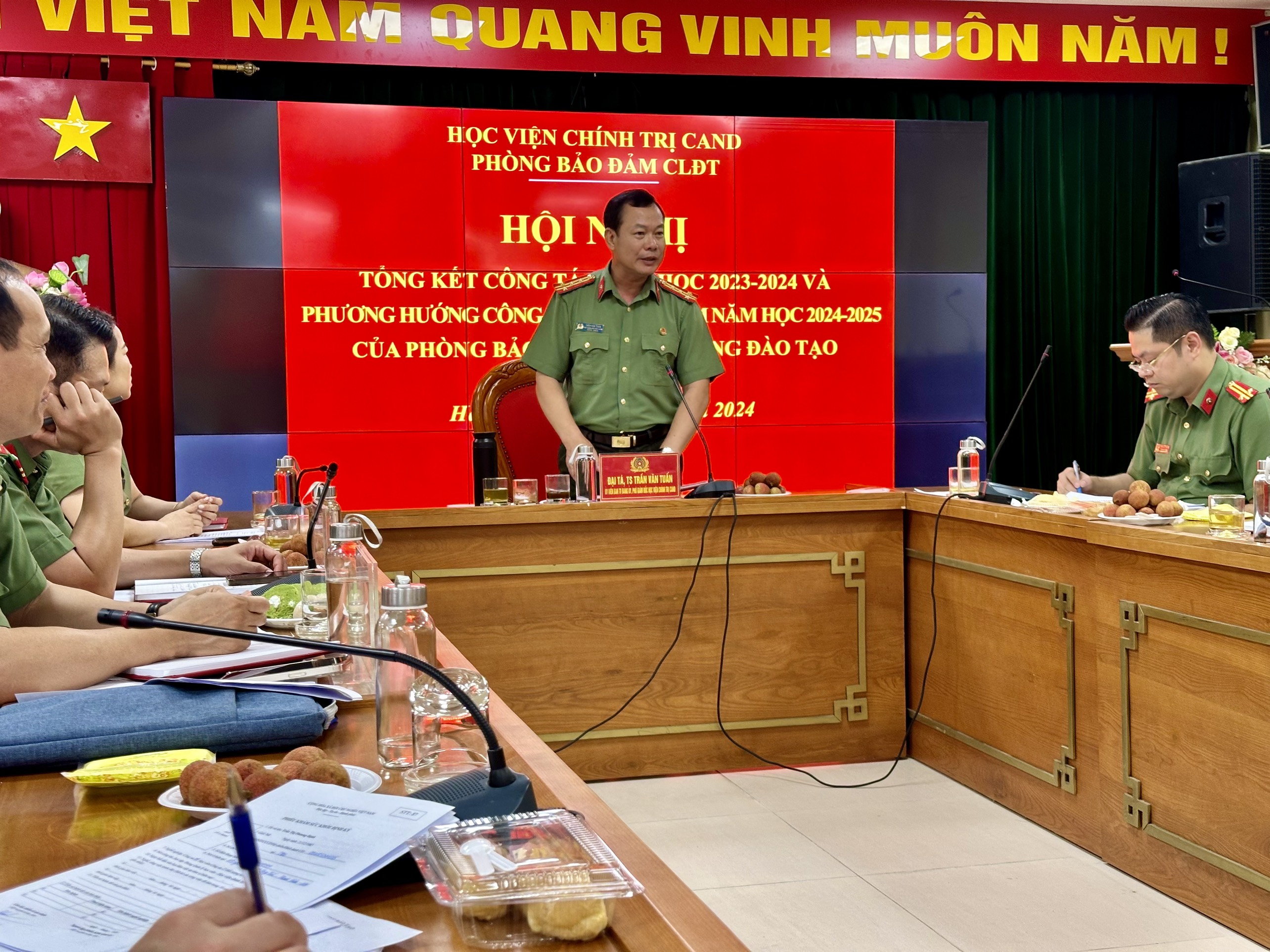 Thay mặt Đảng ủy, Ban Giám đốc Học viện, đồng chí Đại tá, TS Trần Văn Tuấn, Ủy viên Ban Thường vụ Đảng ủy, Phó Giám đốc Học viện đánh giá, nhận xét về kết quả công tác năm học 2023 - 2024 và định hướng, chỉ đạo, lãnh đạo công tác khảo thí, bảo đảm và kiểm định chất lượng đào tạo năm học 2024 - 2025. Đặc biệt, Đồng chí nhấn mạnh cần phải phát huy tinh thần trách nhiệm, sự đoàn kết, thống nhất của tập thể lãnh đạo và cán bộ trong đơn vị để hoàn thành xuất sắc mọi nhiệm vụ được giao.
