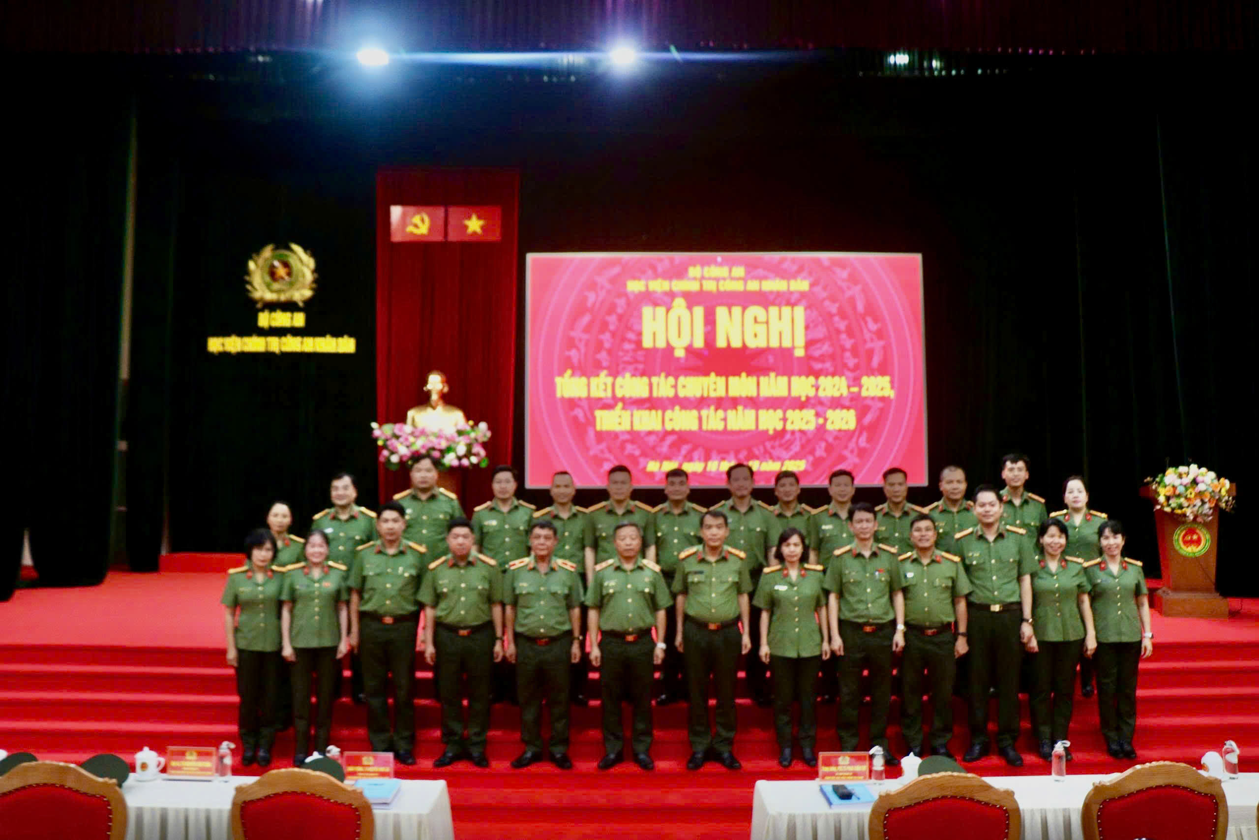 Phát biểu tại Hội nghị, Trung tướng, PGS.TS Phan Xuân Tuy, Giám đốc Học viện ghi nhận và biểu dương những nỗ lực, cố gắng, kết quả công tác của toàn thể cán bộ, giảng viên và học viên Học viện trong năm học vừa qua. Đối với nhiệm vụ công tác năm học 2025 - 2026, đồng chí Giám đốc Học viện yêu cầu các đơn vị trên cơ sở bám sát các chỉ thị, nghị quyết, chủ trương, chỉ đạo của cấp trên để chủ động tham mưu triển khai hiệu quả các mặt công tác. Trong đó trọng tâm là các nghị quyết lớn của Bộ Chính trị, Nghị quyết Đại hội Đảng bộ Công an Trung ương lần thứ VIII, Nghị quyết Đại hội Đảng bộ Học viện lần thứ III. Tập trung triển khai tốt công tác chuyển đổi số, ứng dụng công nghệ thông tin trên tất cả các lĩnh vực công tac của Học viện. Tiếp tục thực hiện tốt các phòng trào dạy giỏi trong Nhà trường, sớm xây dựng kế hoạch lựa chọn, bồi dưỡng đội ngũ giảng viên tham gia Hội thi giảng viên dạy giỏi cấp Học viện để tạo nguồn tham gia Hội thi giảng viên dạy giỏi cấp Bộ. Chủ động nghiên cứu tham mưu cho lãnh đạo Bộ Công an các vấn đề chiến lược liên quan đến công tác bảo đảm an ninh trật tự, đấu tranh phòng, chống tội phạm trong tình hình hiện nay. Đề xuất các nhiệm vụ cụ thể nhằm đẩy mạnh chuyển đổi số trong công tác giáo dục, đào tạo tại Nhà trường.
