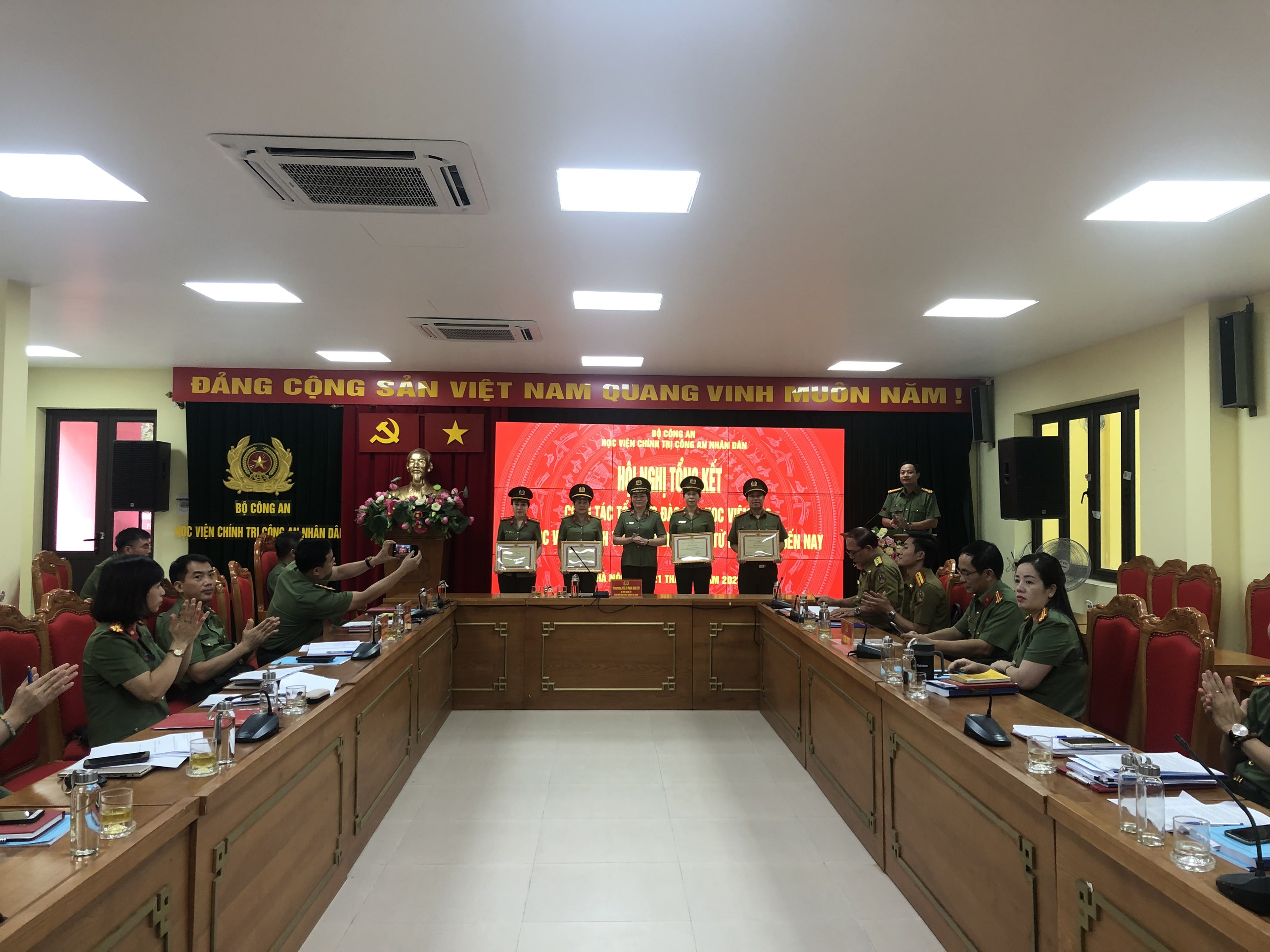 Đồng chí Thiếu tướng, PGS.TS Đinh Ngọc Hoa, Phó Bí thư Đảng ủy, Phó Giám đốc Học viện trao giấy khen của Giám đốc Học viện cho các tập thể, cá nhân có thành tích xuất sắc trong công tác tác tổ chức đào tạo Học viên Lào tại Học viện Chính trị CAND giai đoạn từ năm 2014 đến nay
