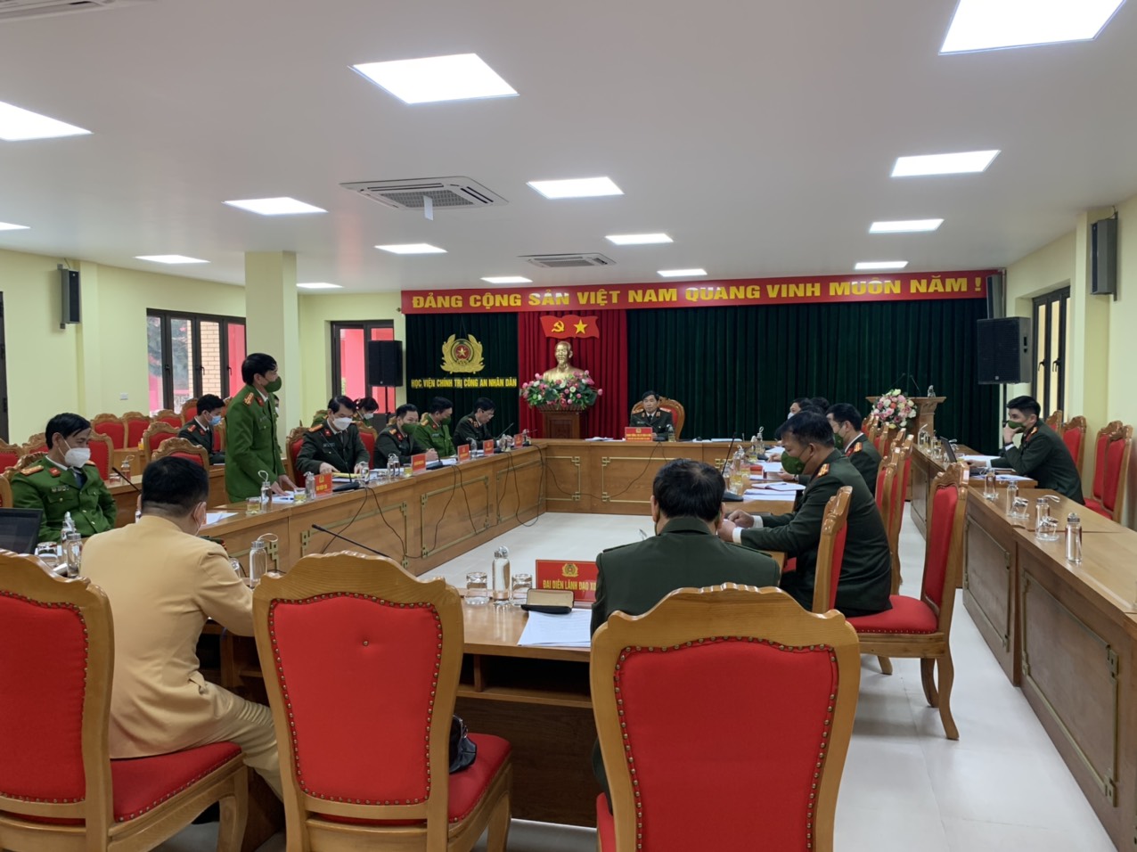 Thực hiện chỉ đạo của lãnh đạo Bộ Công an về việc giao Học viện Chính trị CAND chủ trì, phối hợp các đơn vị liên quan tham mưu tổ chức Hội thảo trực tuyến đến các địa phương về xây dựng dự án Luật Lực lượng tham gia bảo vệ an ninh, trật tự ở cơ sở và Luật Trật tự, an toàn giao thông đường bộ (02 dự án luật), chiều ngày 25/02/2022, tại Học viện Chính trị CAND, đồng chí Trung tướng, PGS. TS Trần Vi Dân, Ủy viên Hội đồng Lý luận Trung ương, Giám đốc Học viện Chính trị CAND đã chủ trì cuộc họp để thảo luận, cho ý kiến về dự thảo kế hoạch và công tác chuẩn bị tổ chức hội thảo. Tham dự cuộc họp có đại diện lãnh đạo các đơn vị: V01, V03, V04, X03, X04, C08, T01, T02, T06, T07, T08, T09, Ban Giám đốc Học viện Chính trị CAND, lãnh đạo các phòng, khoa thuộc Học viện Chính trị CAND.
