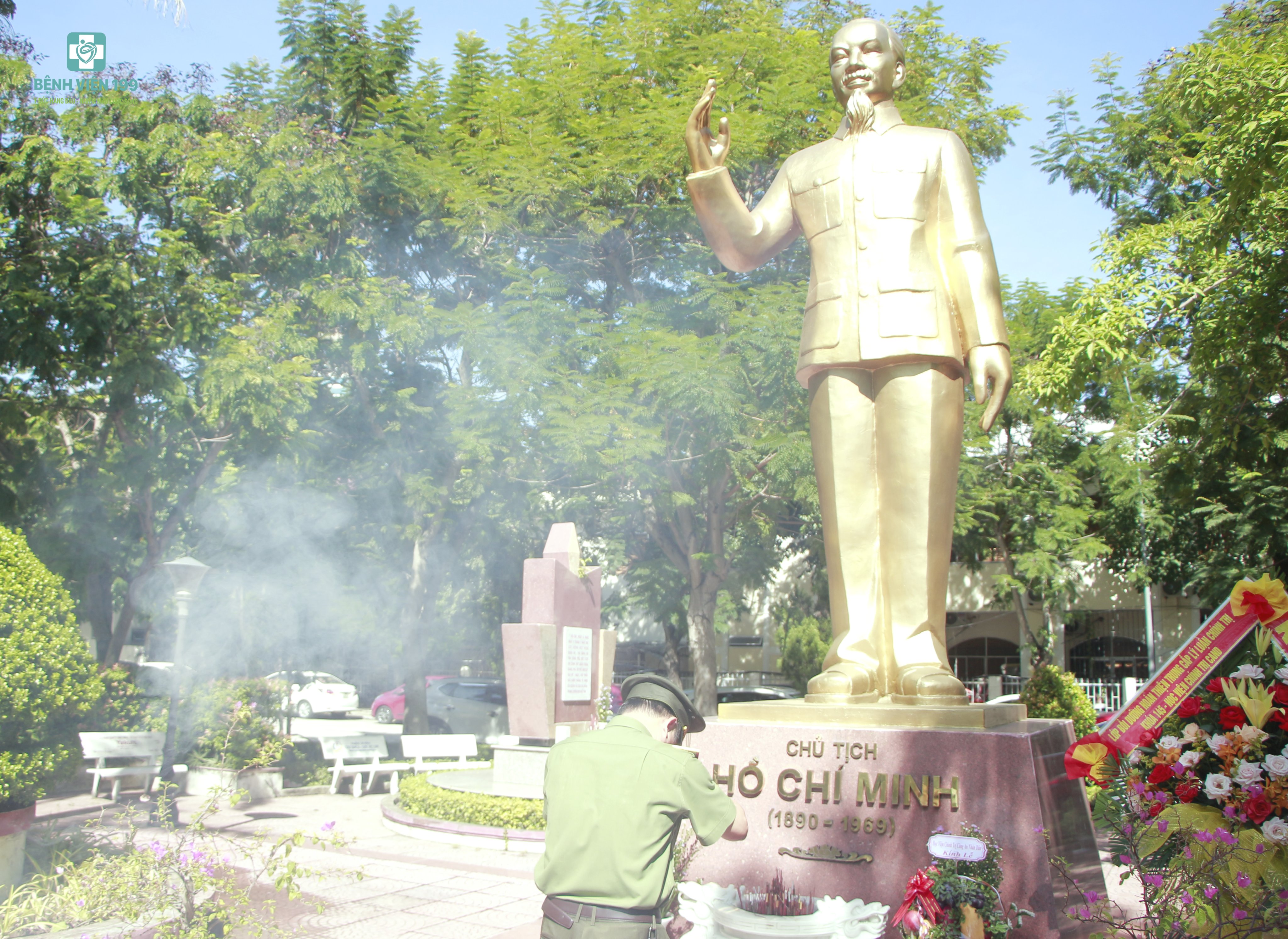 Đồng chí Thiếu tướng, PGS.TS Phan Xuân Tuy, Giám đốc Học viện dâng hương tại Tượng đài Chủ tịch Hồ Chí Minh tại Bệnh viện 199