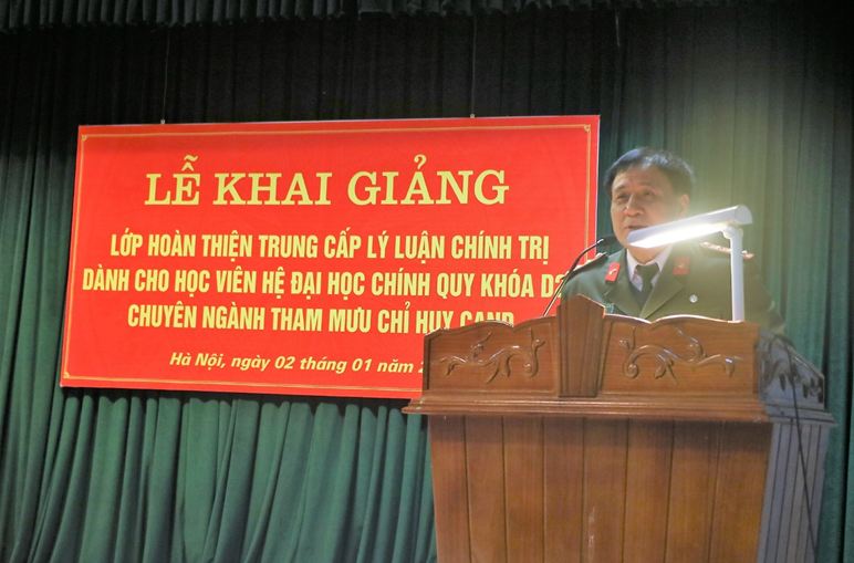 Phát biểu chỉ đạo tại buổi Lễ, đồng chí Đại tá Nguyễn Văn Quyền, Phó Giám đốc Học viện nhấn mạnh: Những năm qua, Đảng ủy Công an Trung ương, lãnh đạo Bộ Công an luôn chú trọng, quan tâm công tác giáo dục lý luận chính trị đối với cán bộ, chiến sĩ trong lực lượng Công an nhân dân. Xác định tầm quan trọng của việc đào tạo, bồi dưỡng lý luận chính trị cho cán bộ, chiến sĩ, học viên trong tình hình hiện nay, Học viện Chính trị Công an nhân dân đã ban hành kế hoạch tổ chức lớp bồi dưỡng, bổ sung hoàn thiện kiến thức tương đương trình độ Trung cấp lý luận chính trị cho học viên hệ đại học chính quy khóa D2, ngành Tham mưu chỉ huy Công an nhân dân. Khóa học nhằm bồi dưỡng, bổ sung hoàn thiện kiến thức tương đương trình độ Trung cấp lý luận chính trị cho học viên; thông qua khóa học, học viên được nâng cao bản lĩnh, trình độ, kiến thức về lý luận chính trị, đáp ứng mục tiêu đào tạo của Học viện Chính trị Công an nhân dân. Đồng thời, đồng chí Phó Giám đốc yêu cầu các học viên tham gia khóa học cần nâng cao nhận thức, chấp hành nghiêm nội quy lớp học, điều lệnh Công an nhân dân, biết vận dụng sáng tạo kiến thức, gắn học đi đôi với hành, hoàn thành các yêu cầu, nhiệm vụ của khóa học.