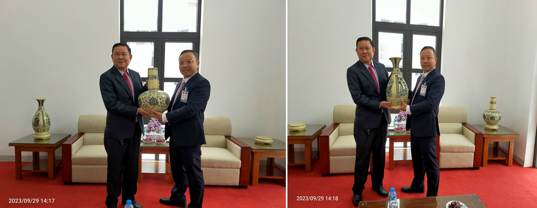 Đồng chí Trung tướng, PGS.TS Phan Xuân Tuy tặng quà chúc mừng Học viện Chính trị Công an Lào