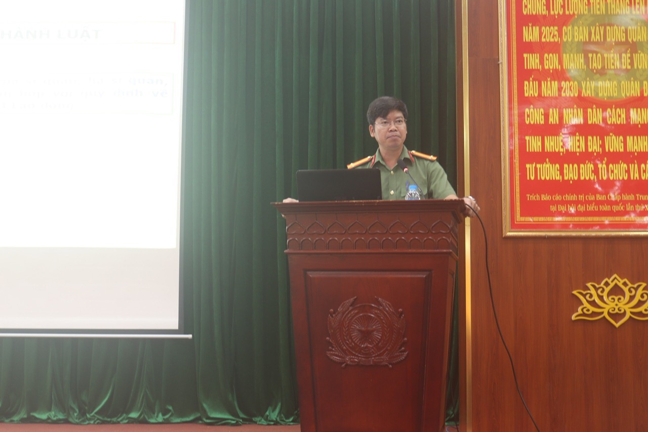 Đồng chí Trung tá, TS Ngô Văn Vịnh, Phó Trưởng Khoa Luật quán triệt các nội dung Luật tại Hội nghị