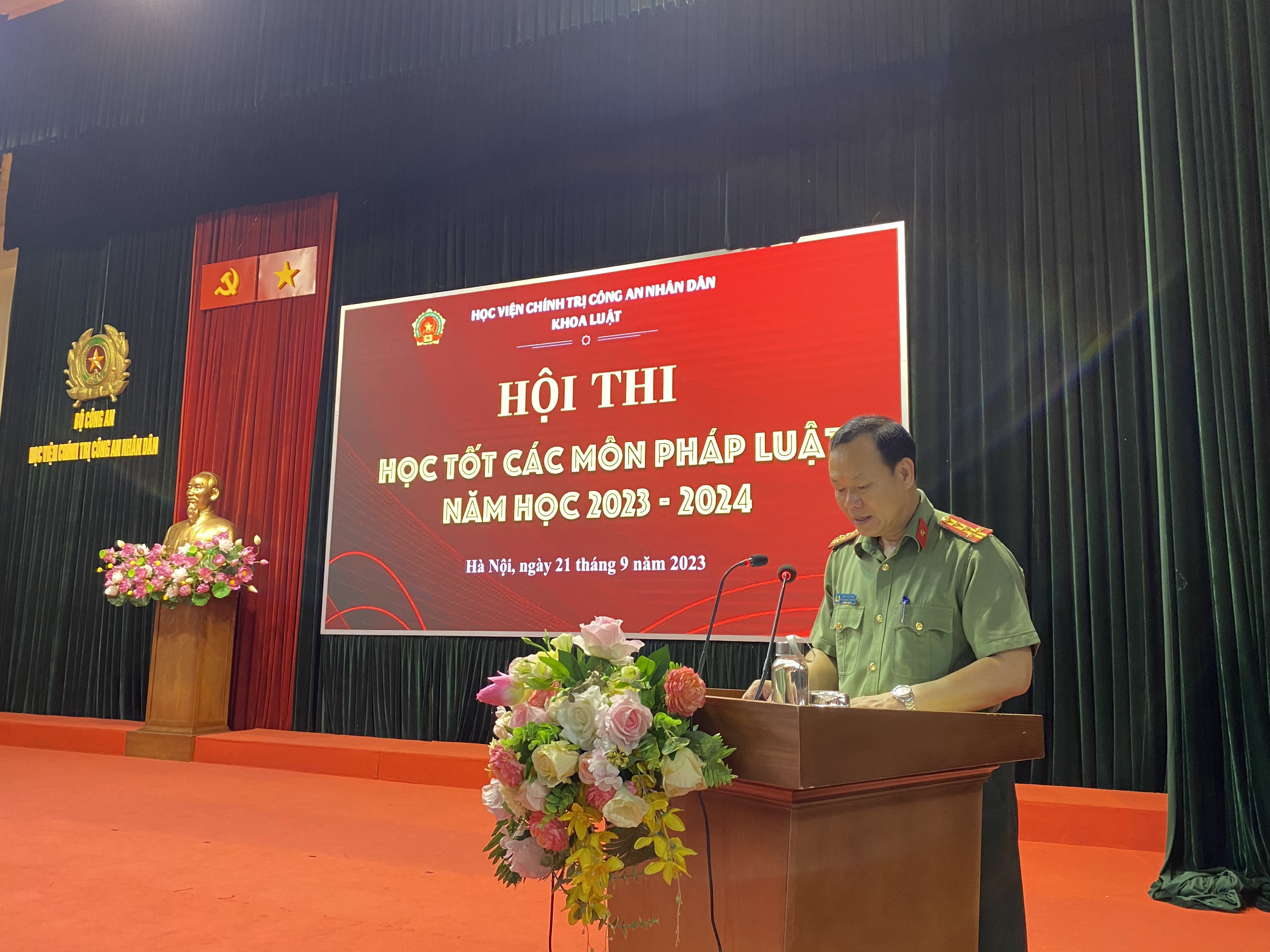 Phát biểu chỉ đạo Hội thi, đồng chí Đại tá, TS. Trần Văn Tuấn ghi nhận sự cố gắng của tập thể lãnh đạo, giảng viên Khoa Luật, sự nỗ lực của các đội thi; khẳng định Hội thi là sân chơi bổ ích dành cho các em học viên, là nơi để trao đổi, chia sẻ kinh nghiệm; xây dựng tính tích cực, chủ động, sáng tạo cho học viên nhằm nâng cao kiến thức, phương pháp học tập, nghiên cứu khoa học... từ đó góp phần nâng cao chất lượng giảng dạy, học tập các môn pháp luật tại Học viện Chính trị CAND.