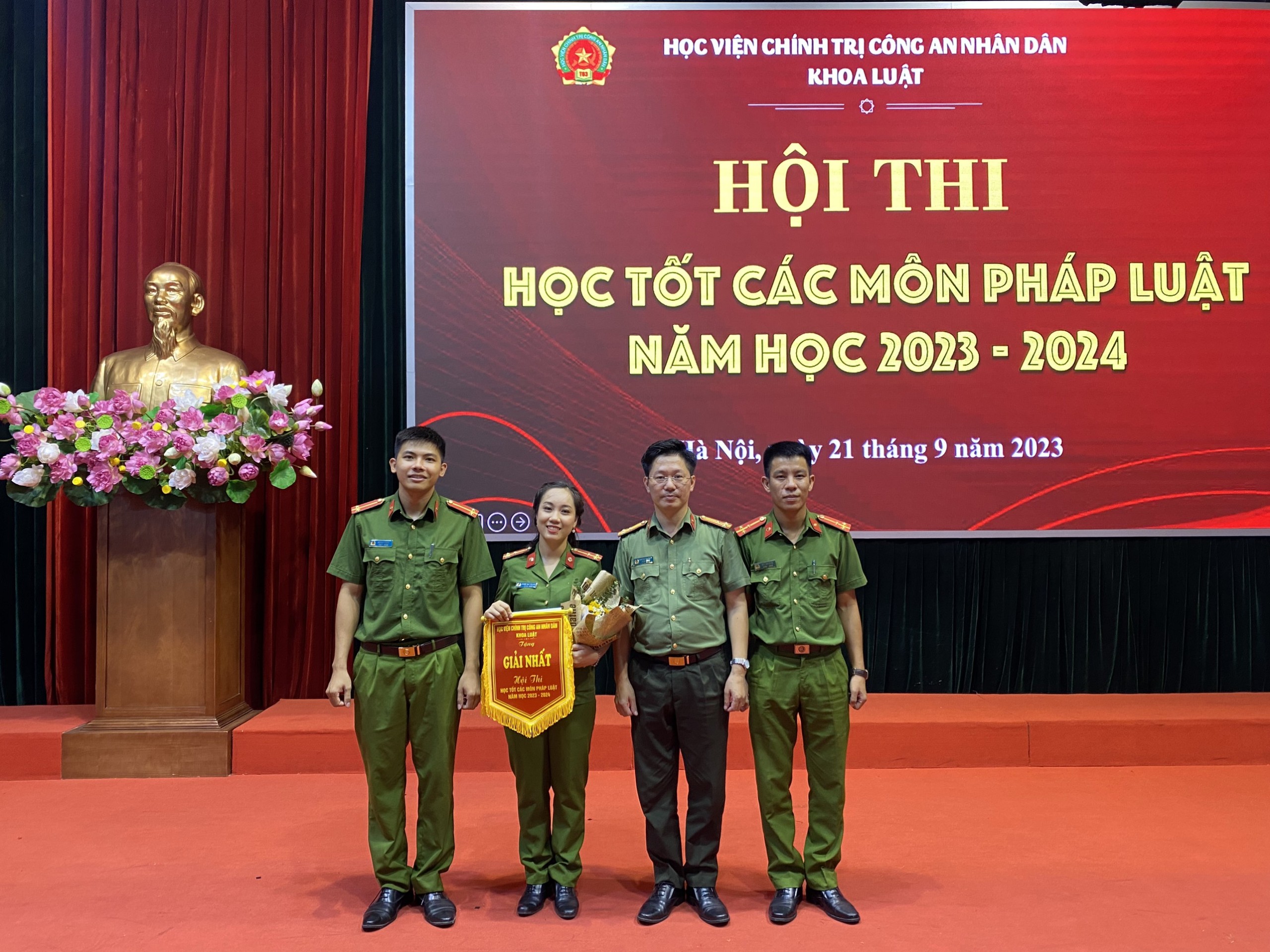Hướng tới kỷ niệm 10 năm Ngày thành lập Học viện Chính trị Công an nhân dân (CAND) (01/3/2014 - 01/3/2024); Thực hiện Kế hoạch 1887/KH-T03-K4, ngày 07/9/2023 của Học viện Chính trị CAND giao Khoa Luật là đơn vị chủ trì tổ chức Hội thi học tốt các môn pháp luật tại Học viện, năm học 2023 - 2024. Sau một thời gian chuẩn bị, ngày 21/9/2023, Hội thi đã diễn ra tại Hội trường trung tâm với sự tham gia của 04 đội thi đến từ các lớp B1, B2, B3/D7 và Lớp Bồi dưỡng Pháp luật và nghiệp vụ Công an.