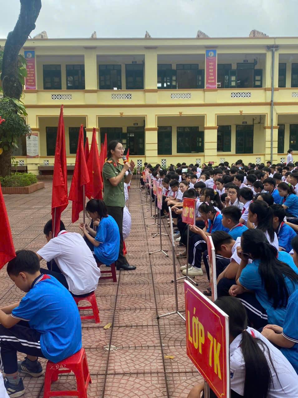 Đồng chí ThS, Đại úy Nguyễn Thị Hạnh Quyên tuyên truyền về phòng, chống bạo lực học đường