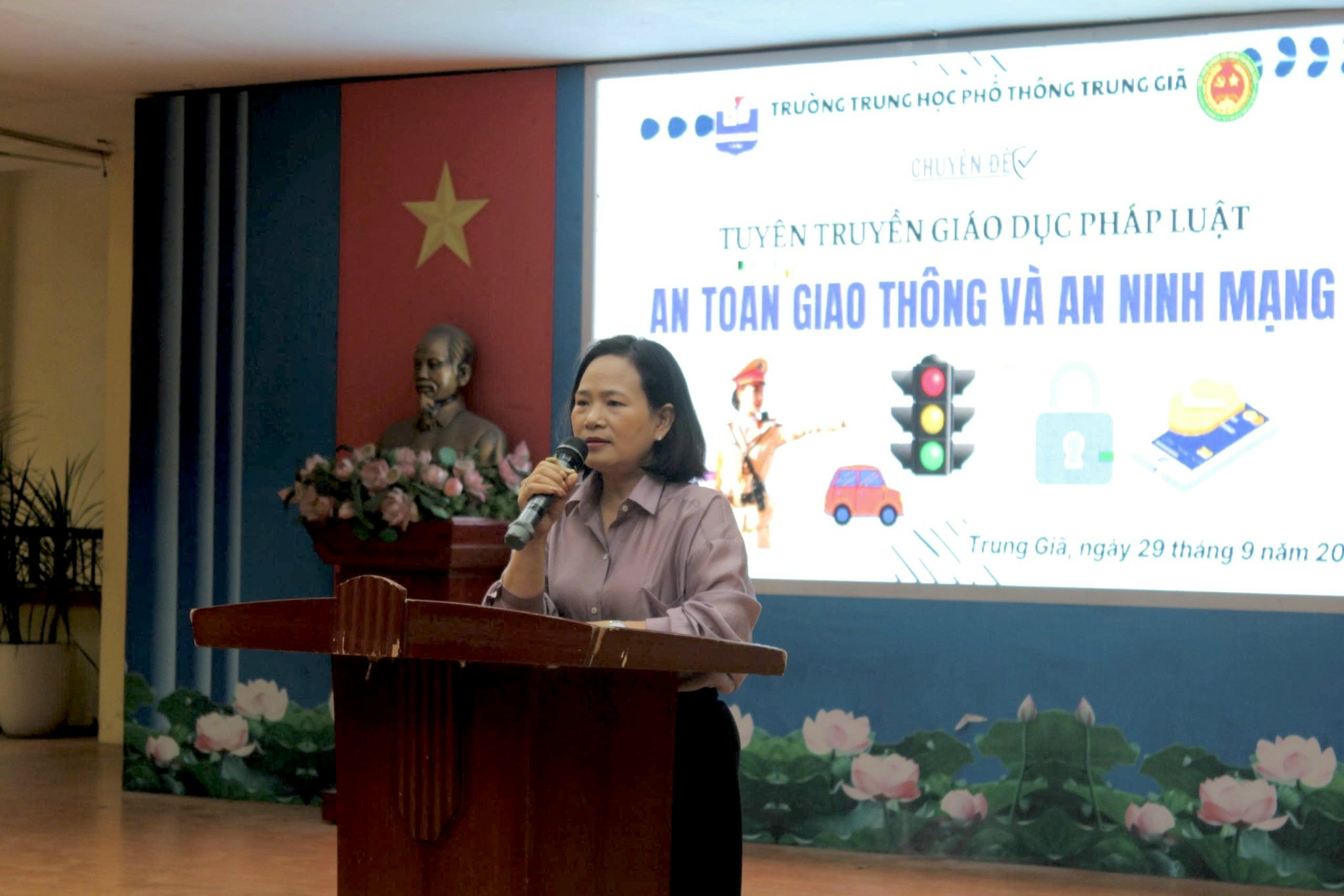 Theo đề nghị của Công an xã Trung Giã, thành phố Hà Nội về việc phối hợp tuyên truyền pháp luật cho học sinh trên địa bàn xã. Được sự đồng ý của Giám đốc Học viện, ngày 29/9/2025, Khoa Luật, Phòng Quản lý học viên, Học viện Chính trị Công an nhân dân phối hợp với Công an xã Trung Giã tổ chức tuyên truyền, phổ biến, giáo dục pháp luật với chủ đề: “An toàn giao thông và an ninh mạng” cho gần 1000 em học sinh Trường THPT Trung Giã.