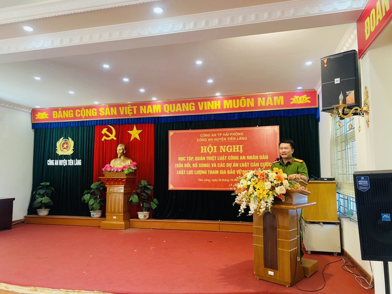 Ngày 26/10/2023, Hội nghị học tập quán triệt Luật Công an nhân dân (sửa đổi, bổ sung) và tuyên truyền dự án Luật Căn cước và Luật Lực lượng tham gia bảo vệ an ninh, trật tự ở cơ sở được diễn ra tại trụ sở Công an huyện Tiên Lãng, Hải Phòng. Tham dự Hội nghị, về