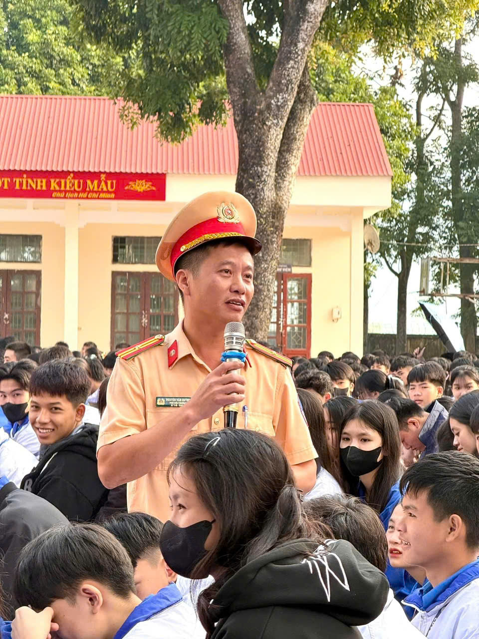 Đồng chí Thiếu tá Nguyễn Văn Quỳnh tuyên truyền pháp luật về an toàn giao thông