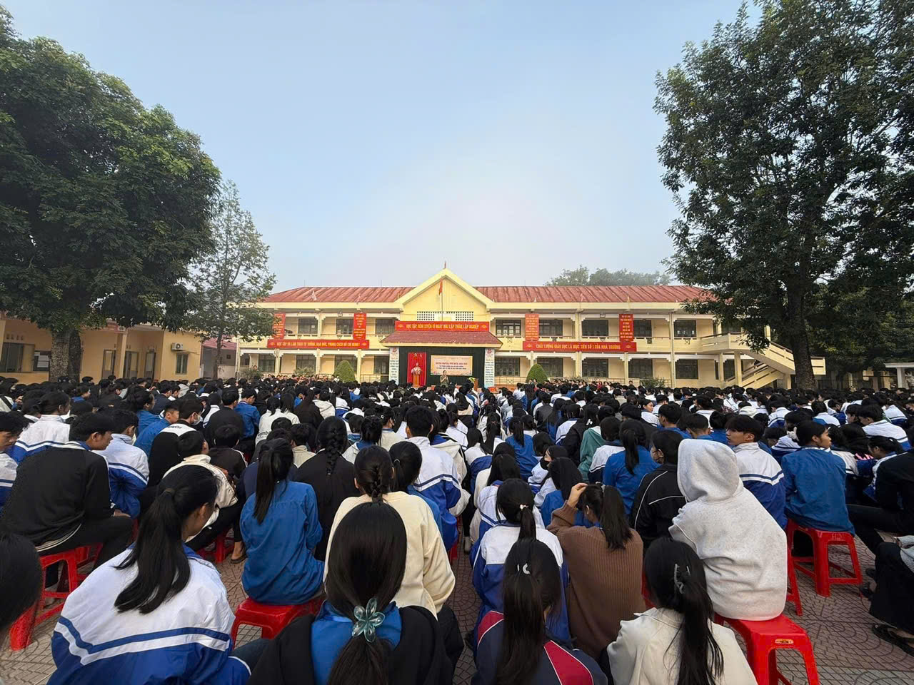 Học sinh toàn trường tham dự buổi tuyên truyền