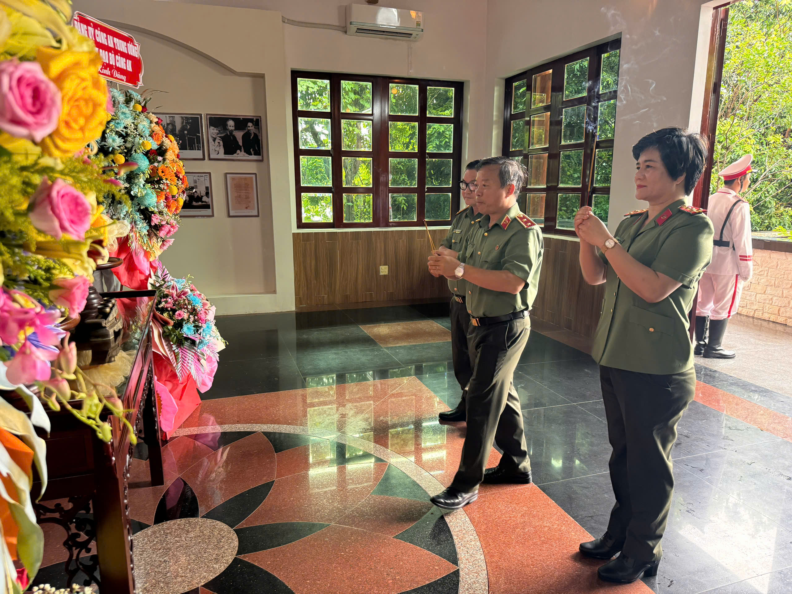 Đồng chí Trung tướng, PGS.TS, NGƯT Phan Xuân Tuy, Giám đốc Học viện Chính trị CAND dâng hương tưởng nhớ Chủ tịch Hồ Chí Minh tại Nhà tưởng niệm Chủ tịch Hồ Chí Minh và chụp ảnh lưu niệm tại Khu di tích Quốc gia Hòn Đá Bạc